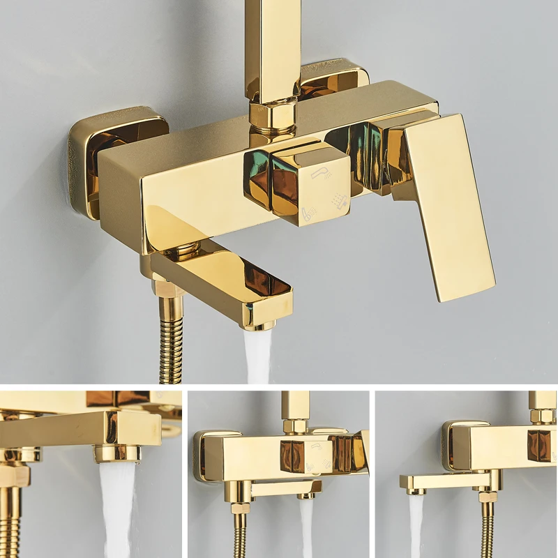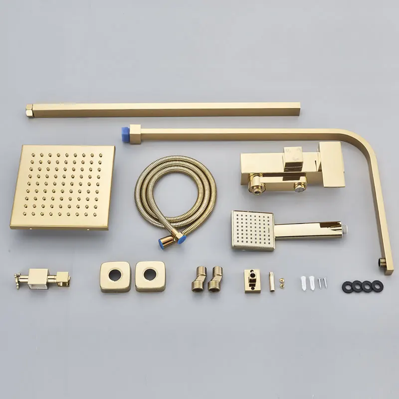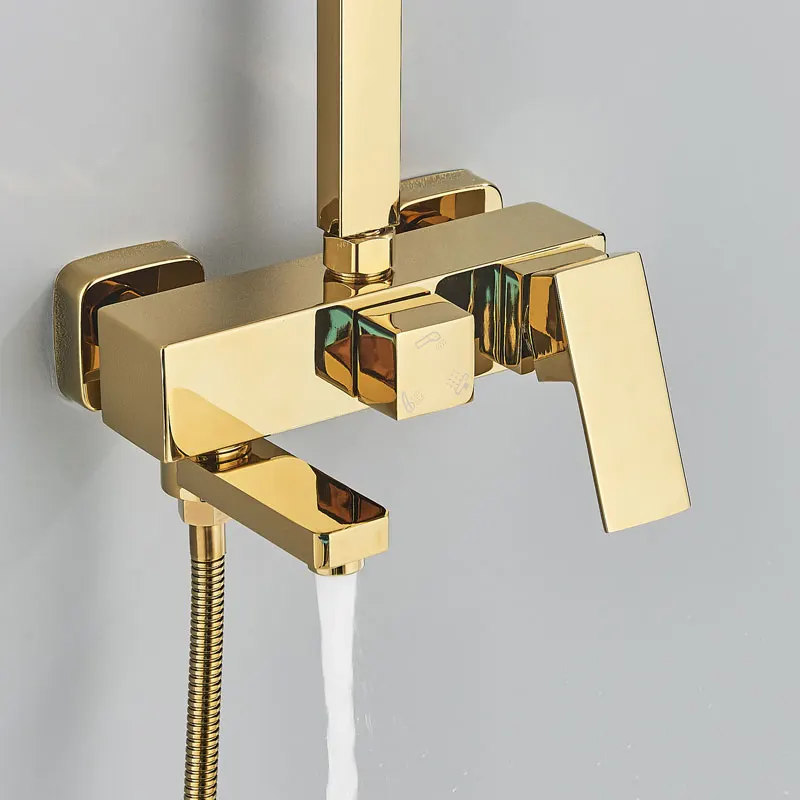 Robinet de douche de salle de bains en or brossé, mélangeur en laiton froid et chaud, systèmes à 3/4 voies, tête de pluie, expérience de bain, noir, Chrome doré