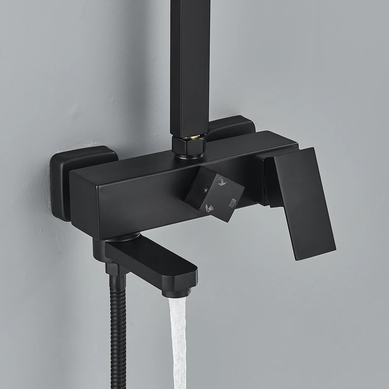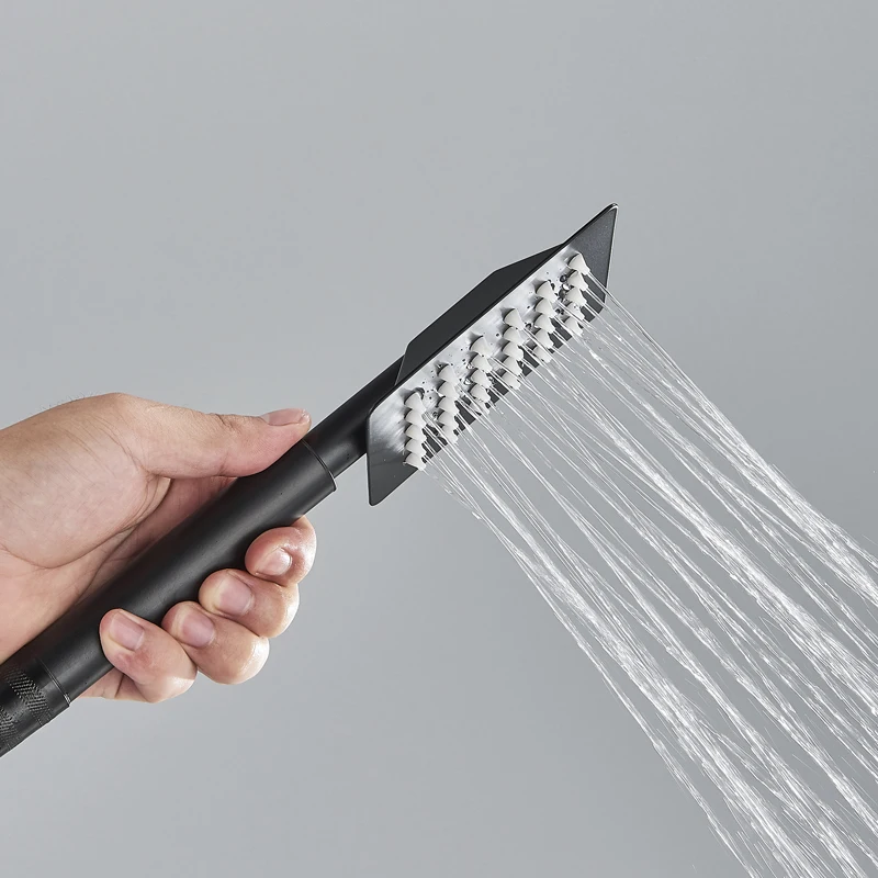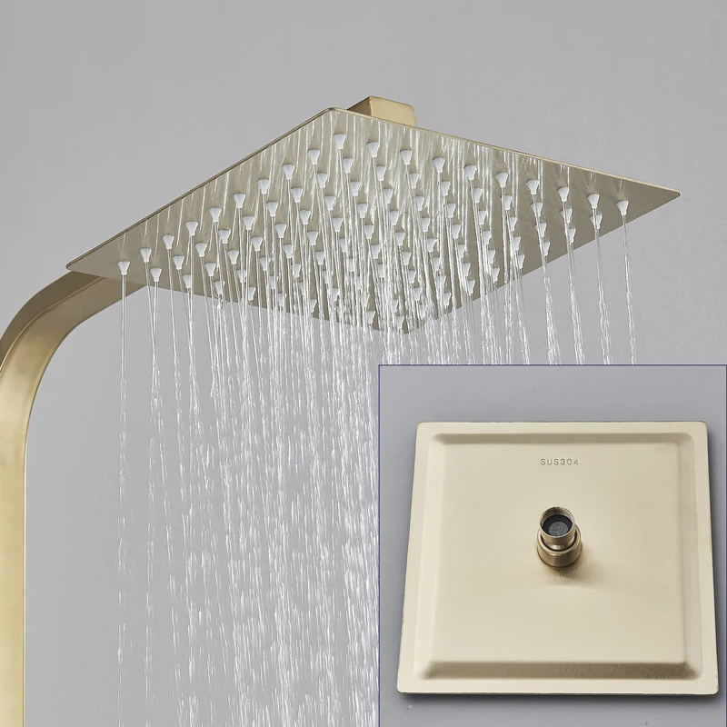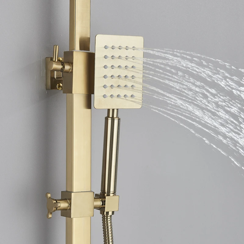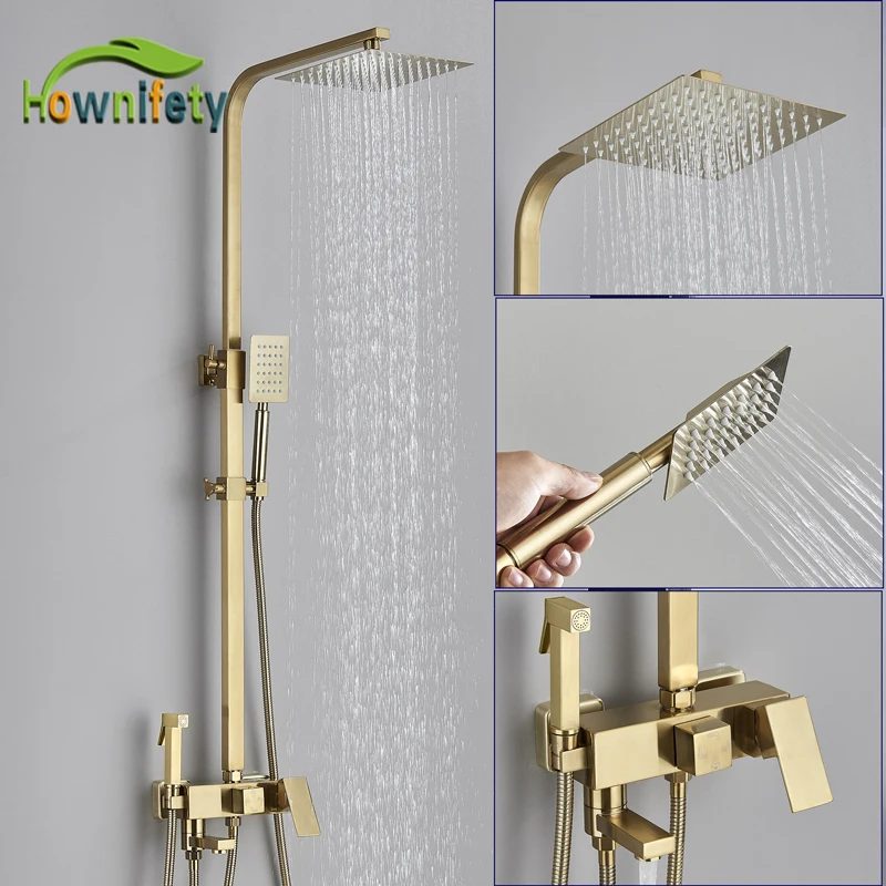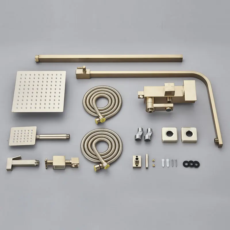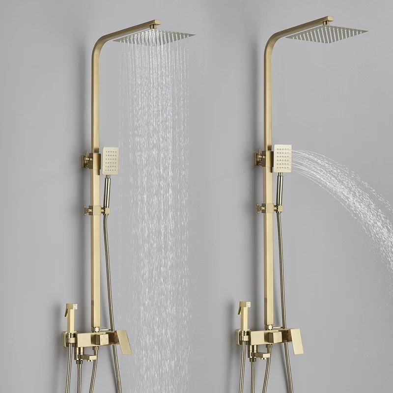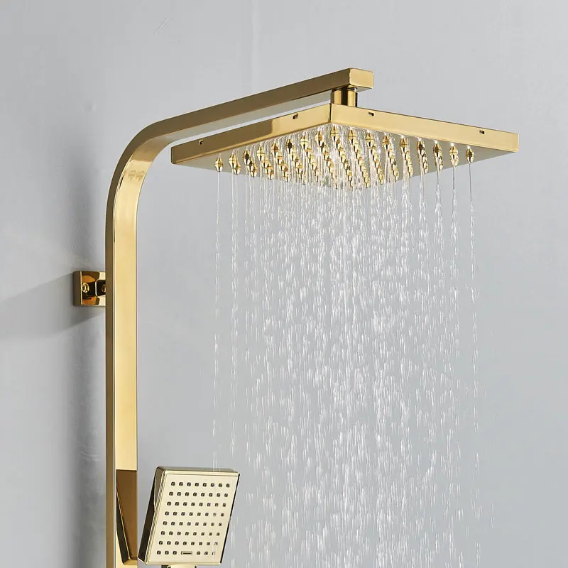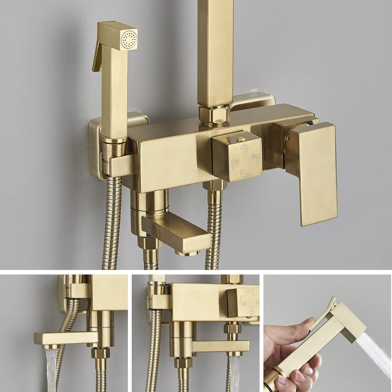 Robinet de douche de salle de bains en or brossé, mélangeur en laiton froid et chaud, systèmes à 3/4 voies, tête de pluie, expérience de bain, noir chromé doré