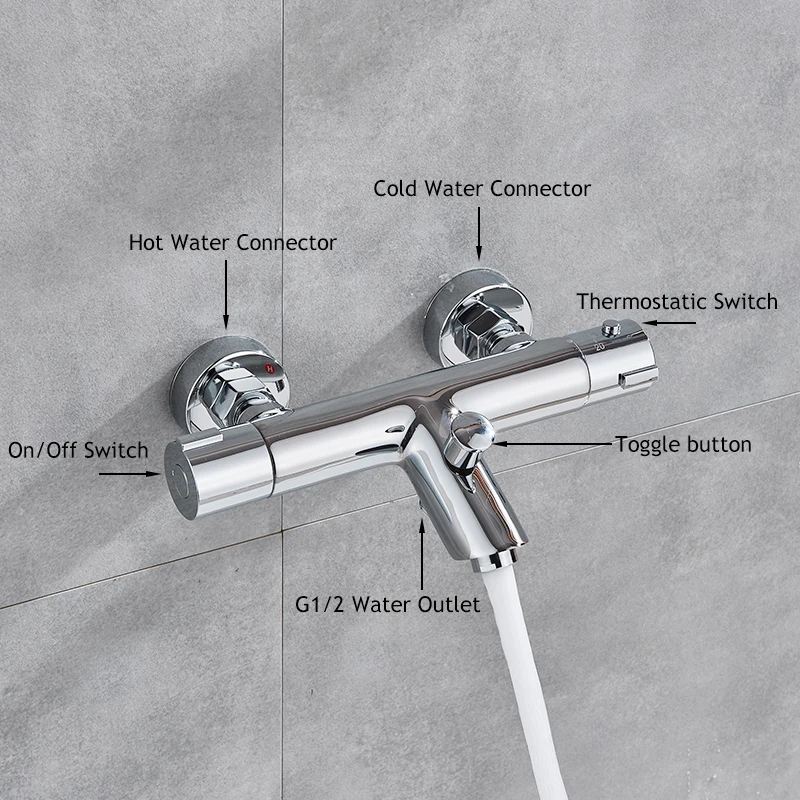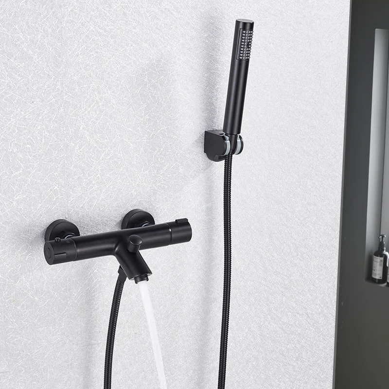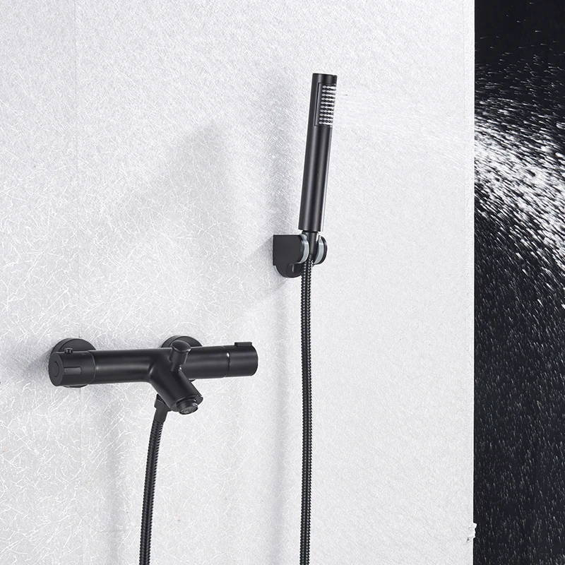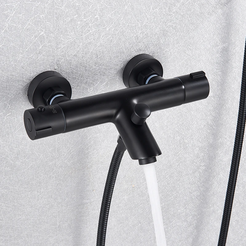 Robinet mitigeur de douche thermostatique noir chromé/mat à double poignée robinet mitigeur de douche à température constante ensemble de douche de bain à main