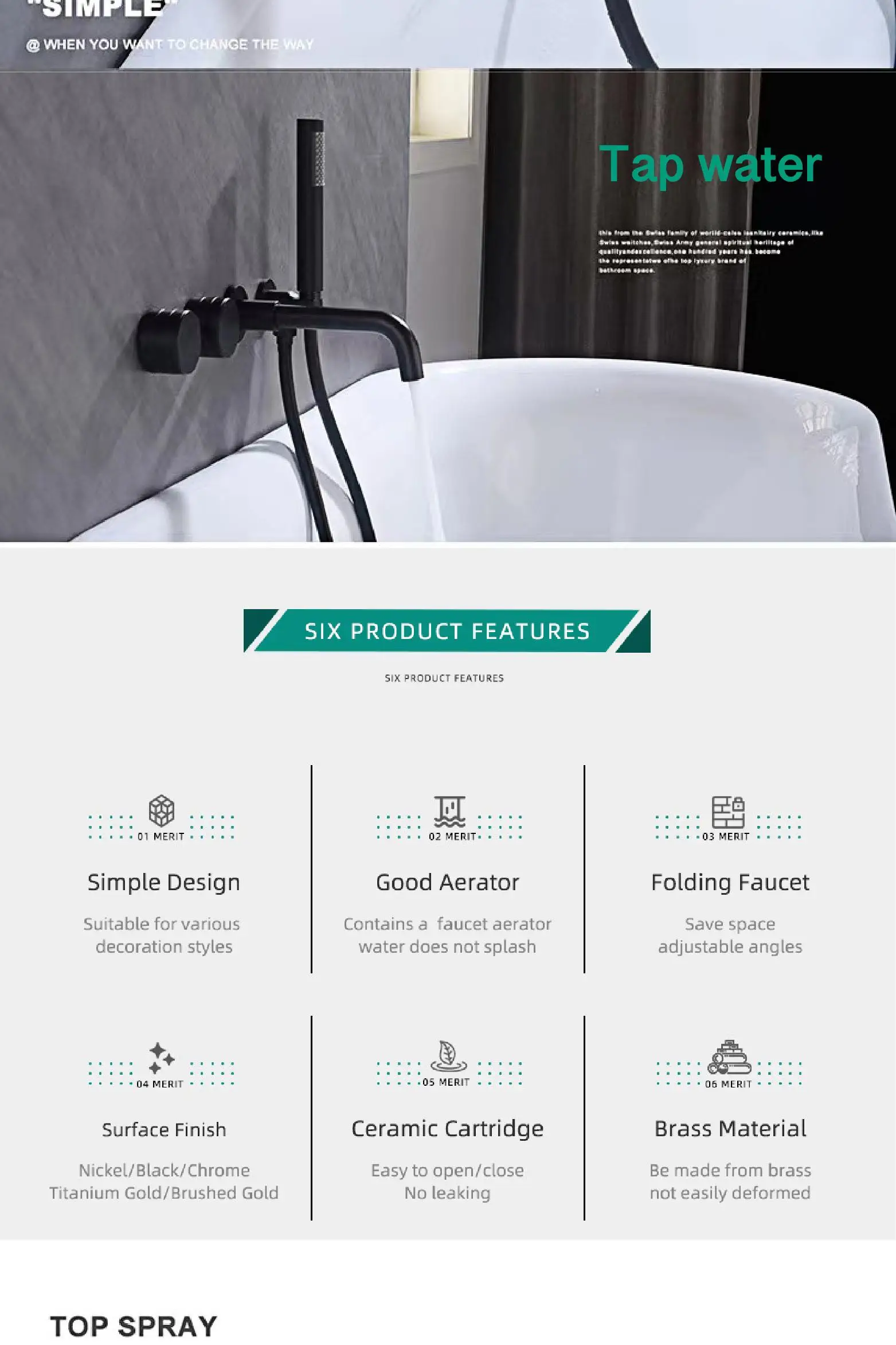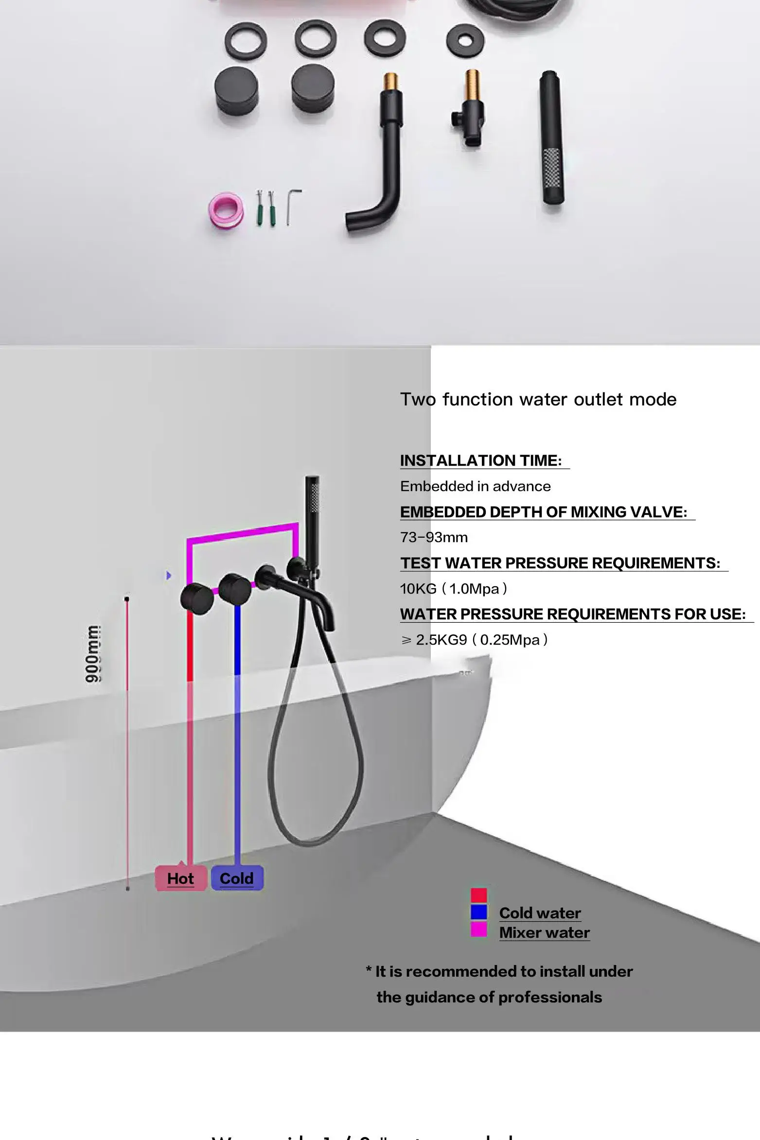- Type de contrôle de l’eau froide/chaude: Double contrôle à support unique