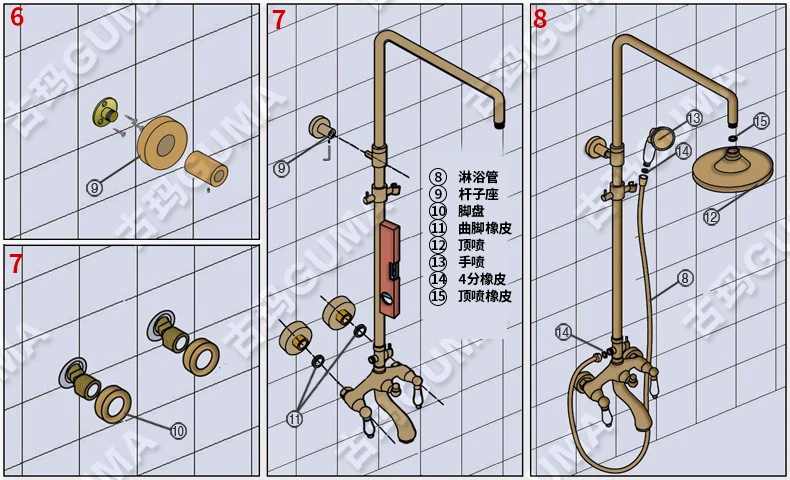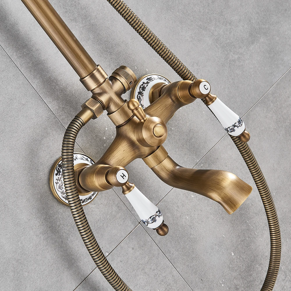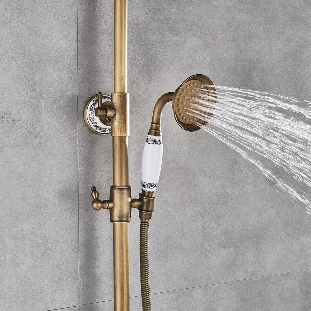 Classique Antique laiton salle de bain douche robinet ensemble baignoire douche robinet bain douche robinet pluie pommeau de douche pivotant arrosage