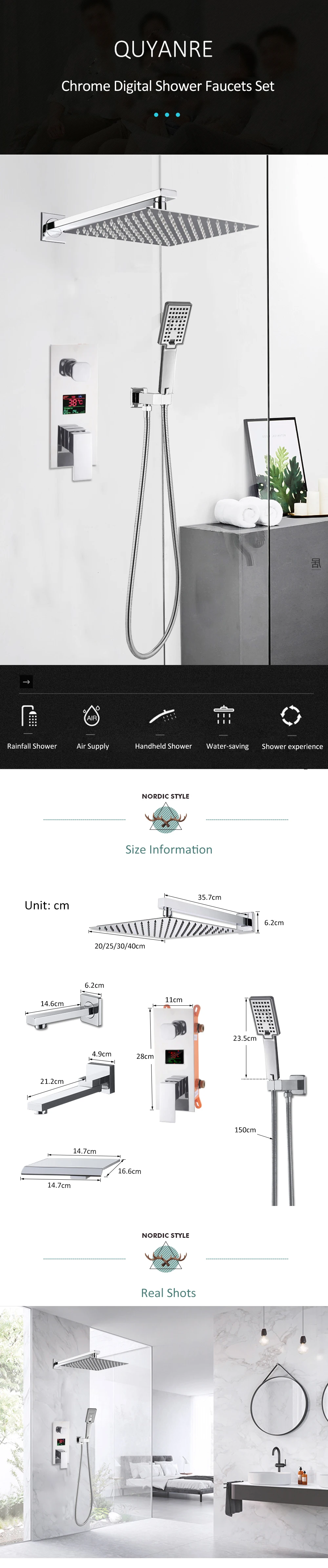 - Feature3: Chrome Rainfall Shower Head With Single Handle Mixer Tap Faucet