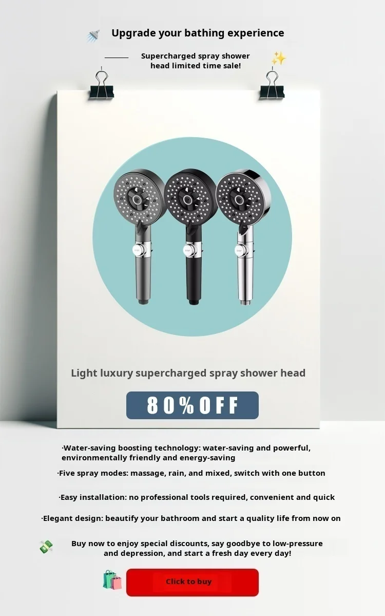 Soyez le premier à laisser votre avis sur “Ensemble de Super douche domestique, lumière de déclloration, Booster de luxe, pomme de douche à haute pression, salle de bains, purification, Booster”