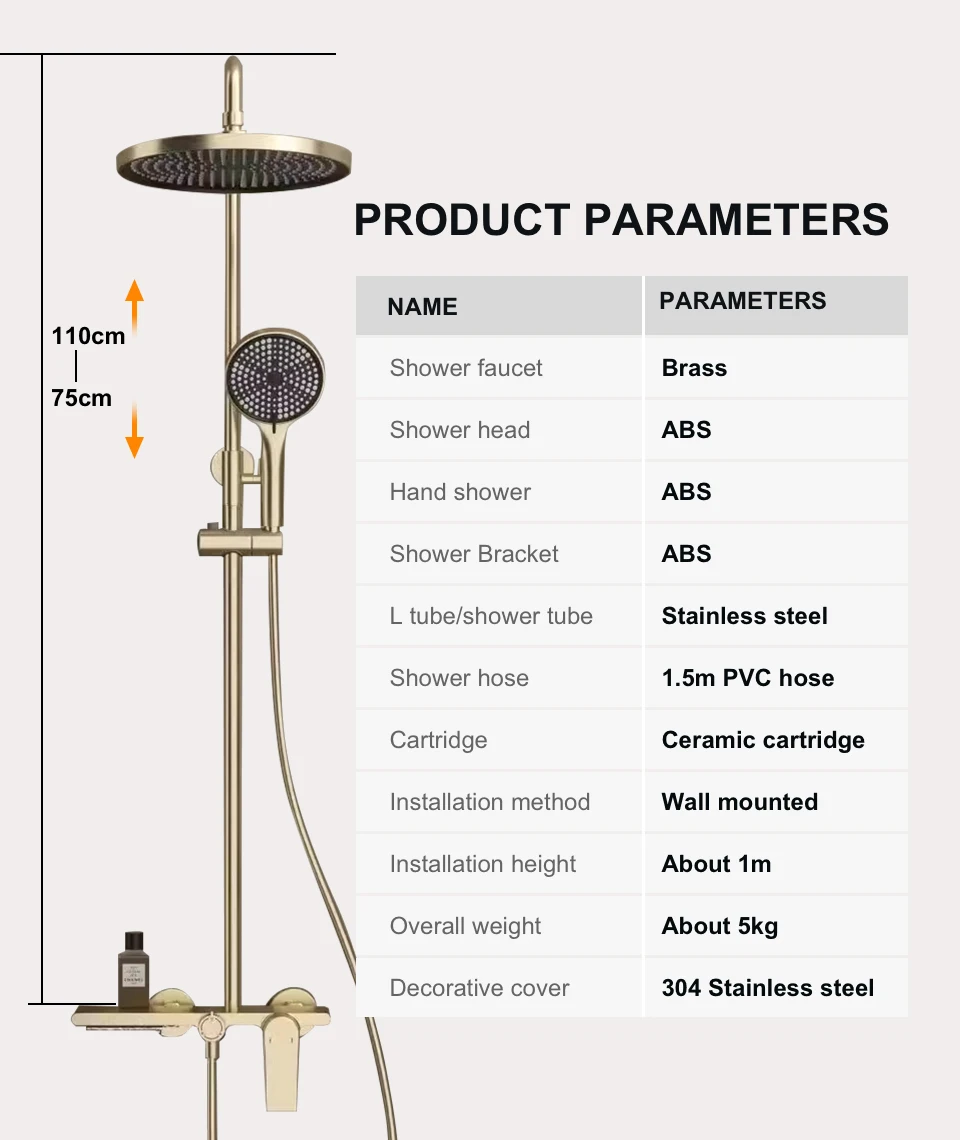 - Shower hight: 70-120cm