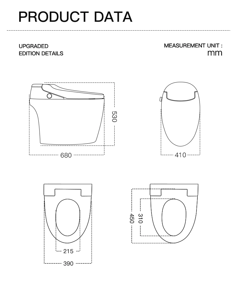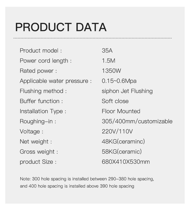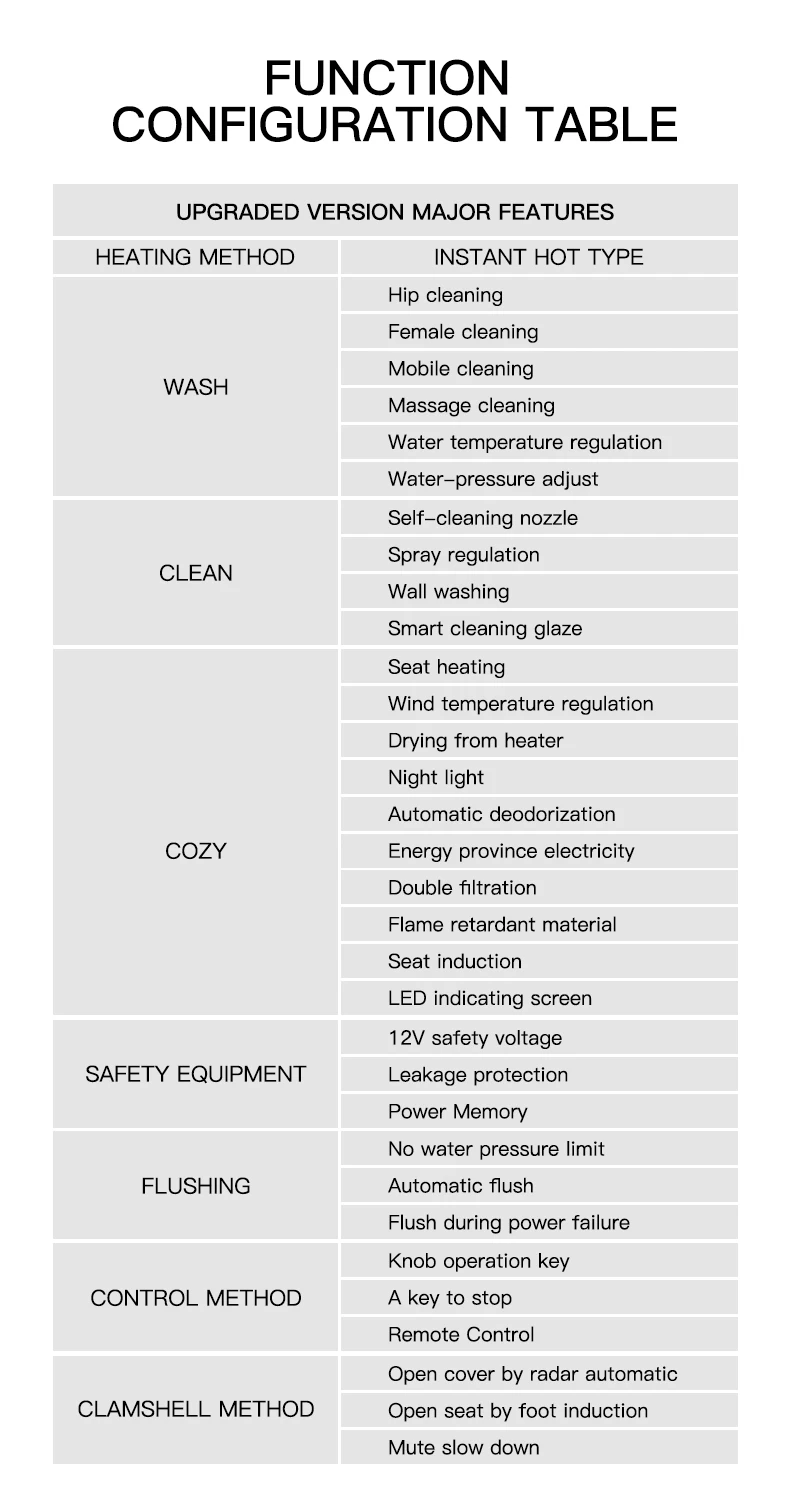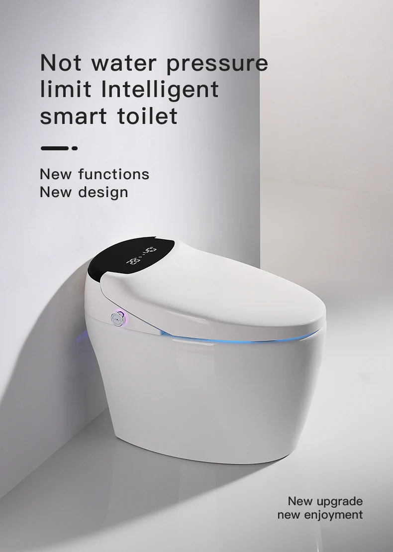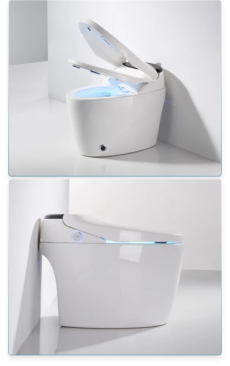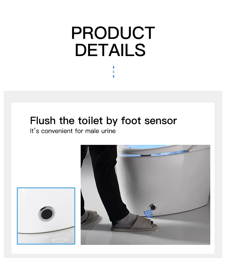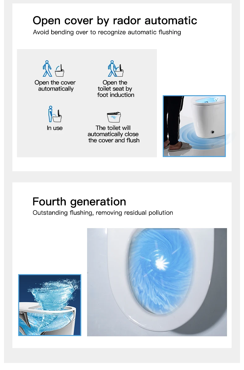 Ensemble de toilettes intelligentes modernes, nettoyage automatique, toilettes monobloc, sol debout, chasse d’eau à capteur intelligent, chasse d’eau des hanches, protection contre les pannes de courant.