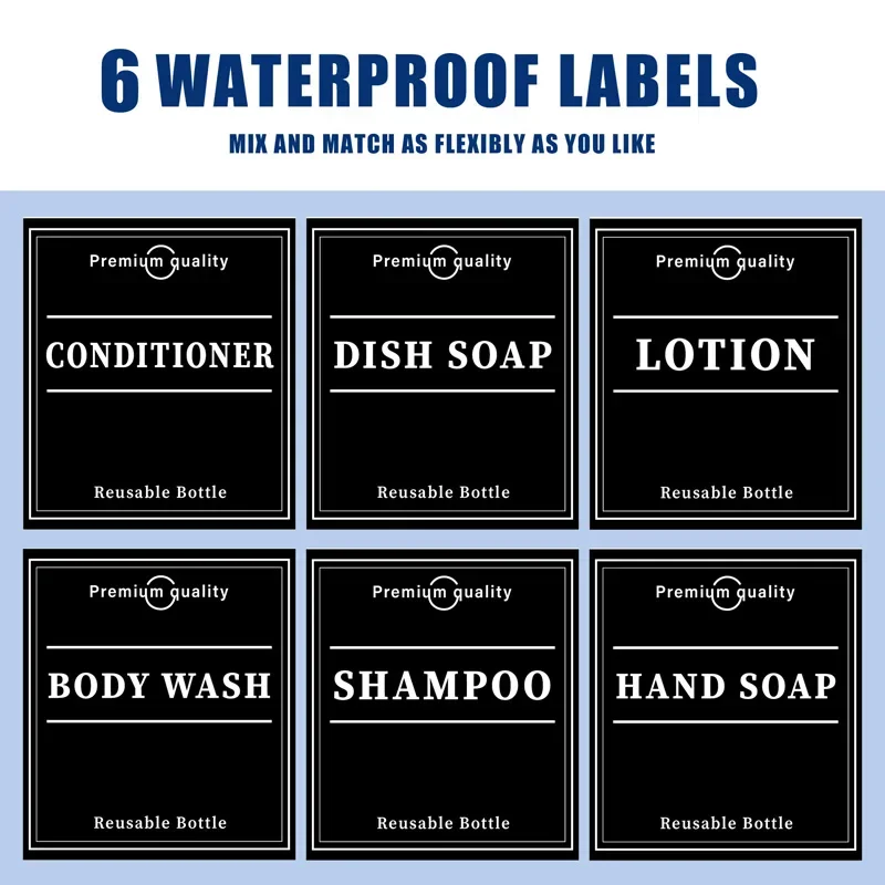 Ensemble distributeur de savon avec étiquettes, 1/2/3x500ml, plateau de bouteille de shampoing rechargeable, récipient de Lotion liquide, accessoires de cuisine et de salle de bainsEnsemble distributeur de savon avec étiquettes, 1/2/3x500ml, plateau de bouteille de shampoing rechargeable, récipient de Lotion liquide, accessoires de cuisine et de salle de bains