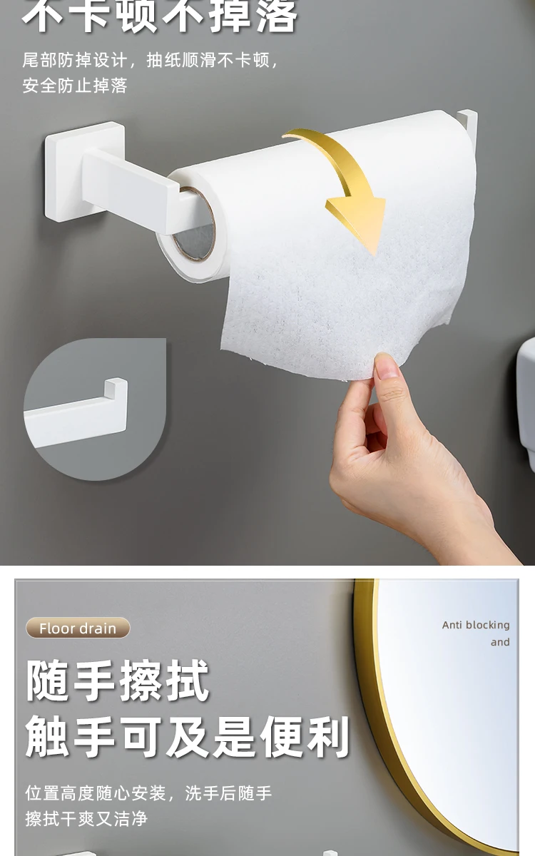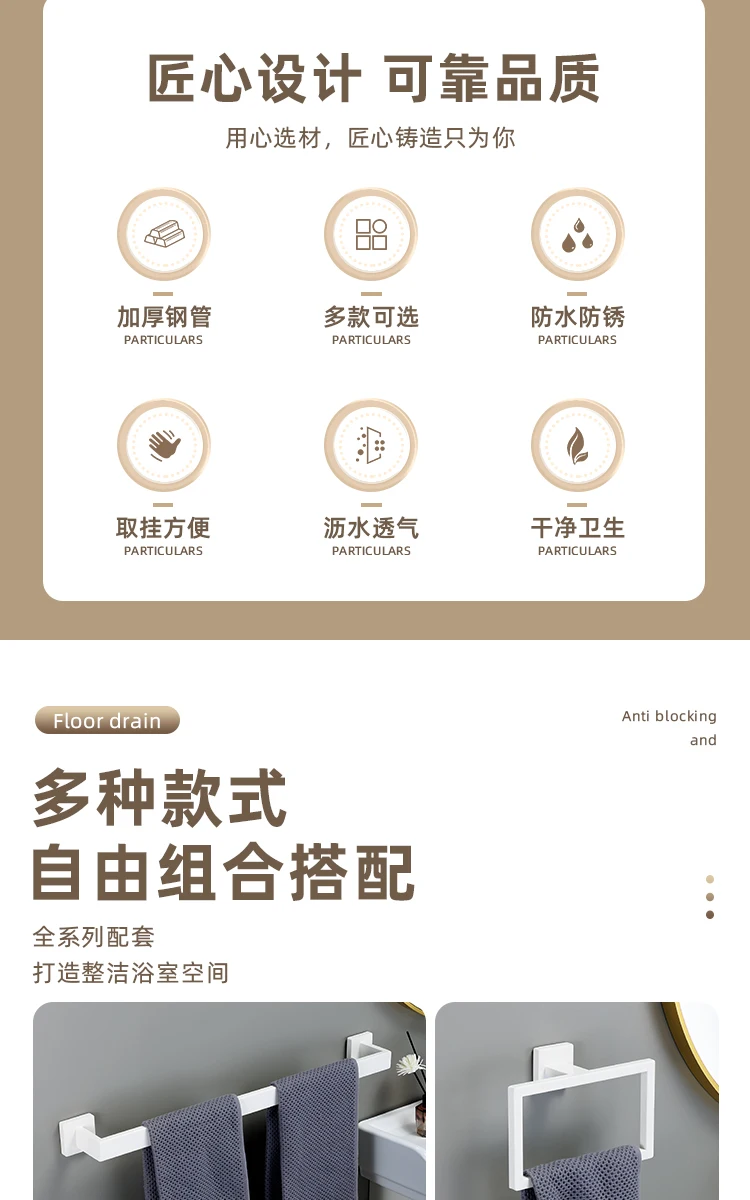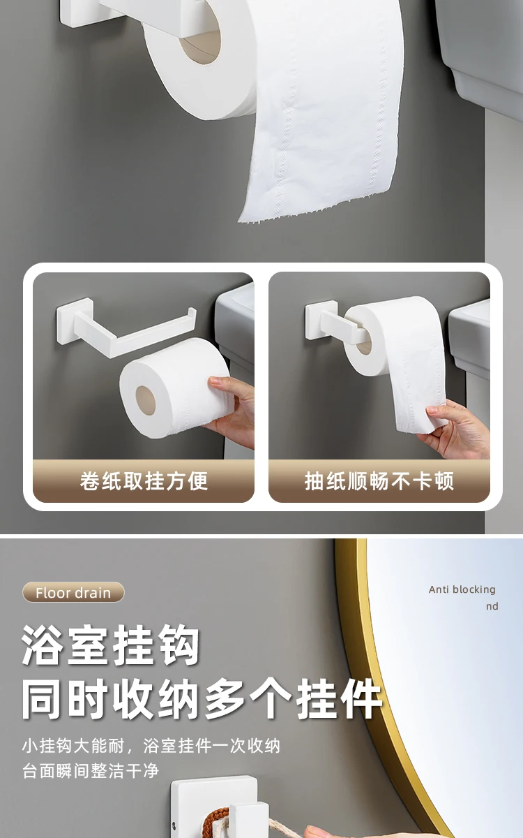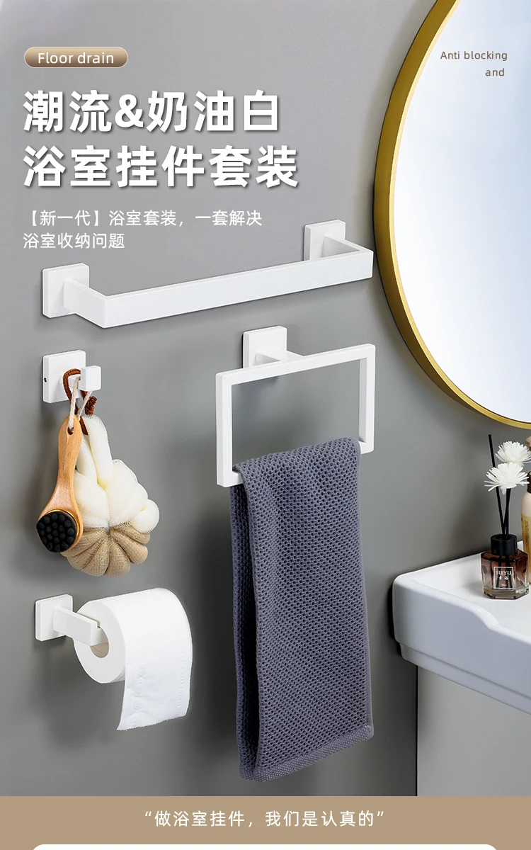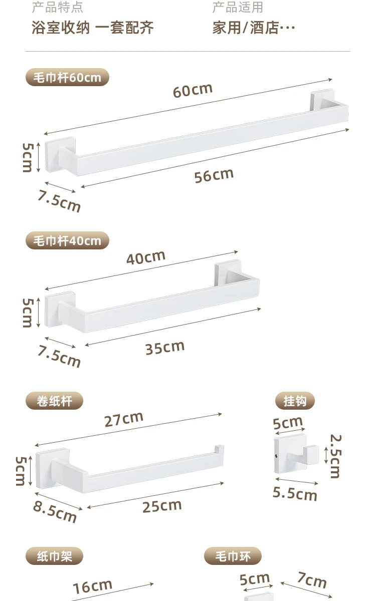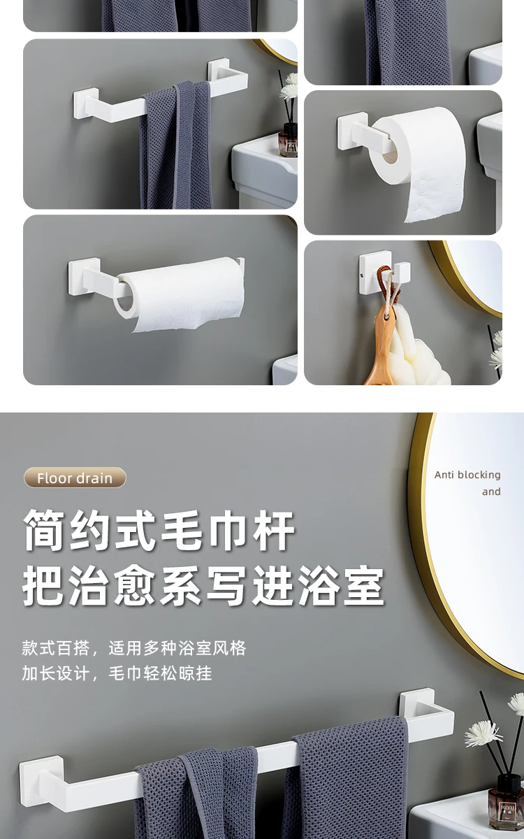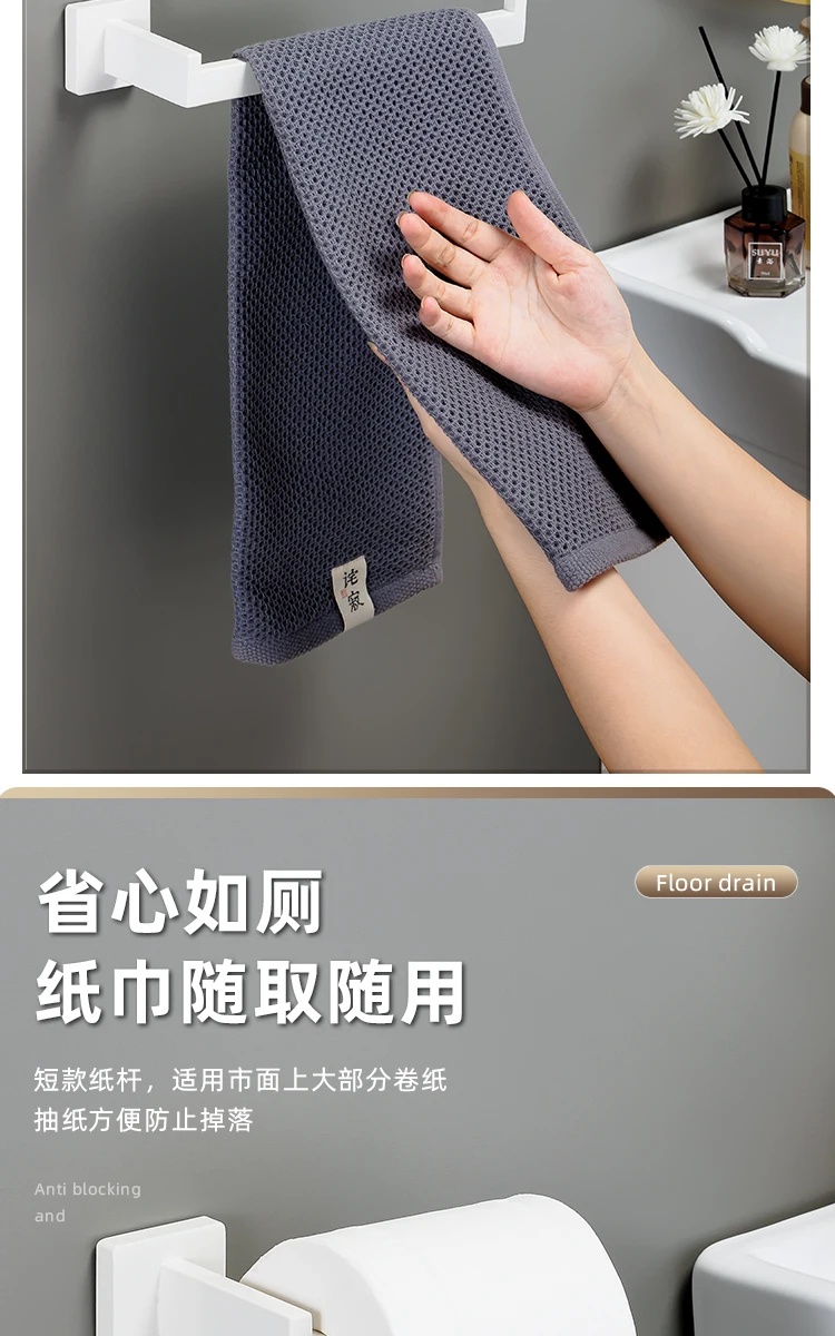 [One-Stop Matching] -Cet ensemble comprend un porte-serviettes, un anneau de serviette, un porte-papier hygiénique et deux crochets à serviettes. Il peut être parfaitement assorti à vos toilettes et à votre salle de bain.