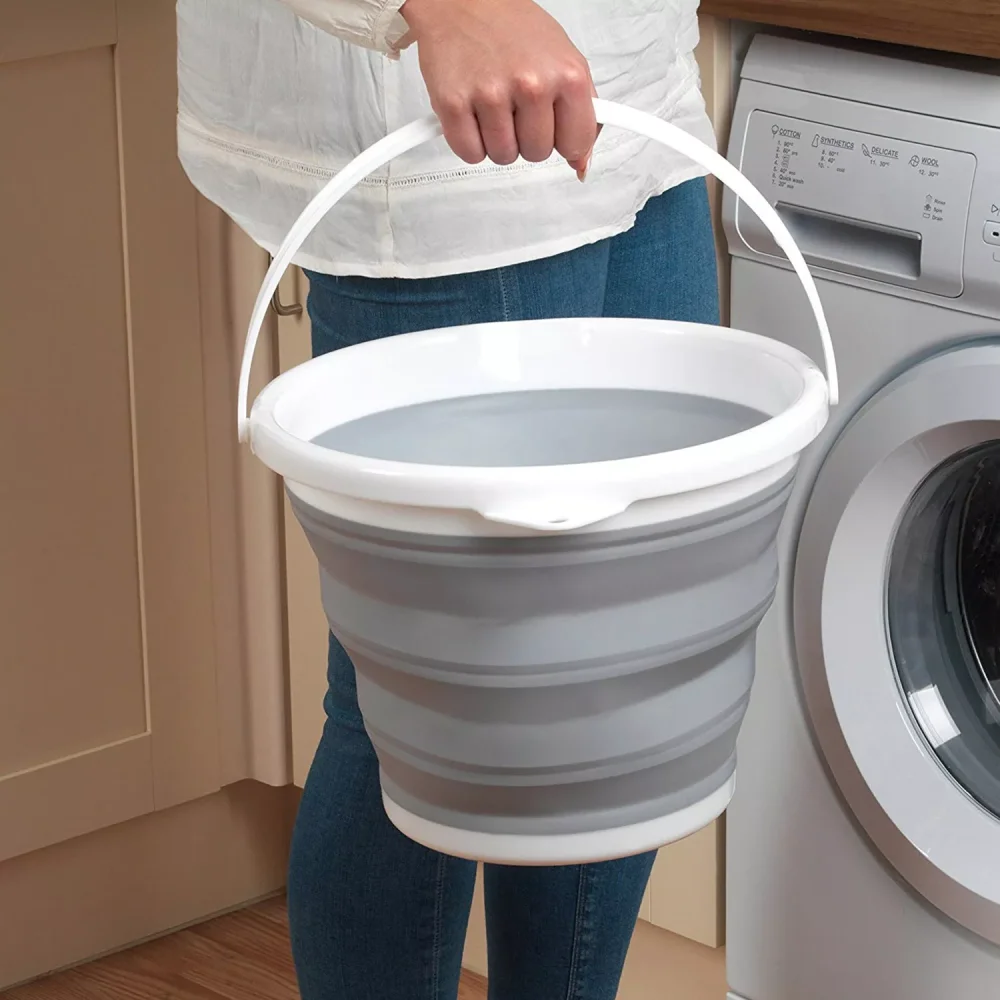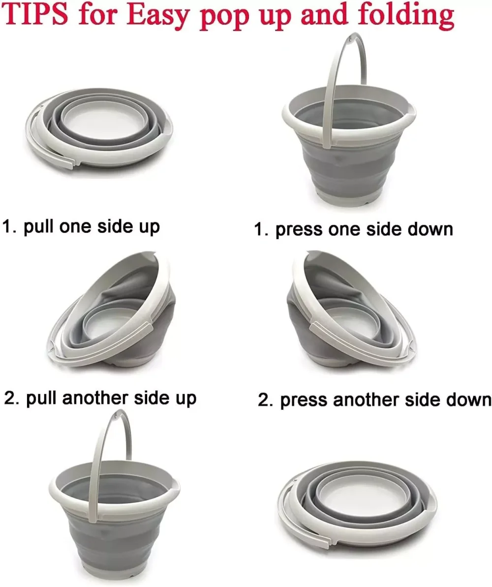 Il s’agit d’un seau pliable pliable en plastique de silicone polyvalent idéal pour la cuisine, le camping en plein air et la randonnée pour transporter l’eau et tout ce que vous aimez à utiliser pour. Il est un seau portable polyvalent super peu encombrant et facile à ranger à la maison et aux voyages. Pour un super stockage, simplement pousser sur son cadre en plastique pour l’effondreer plat, ainsi que vous pourrez facilement dans l’armoire lorsque vous avez fini! C’est parfait pour les petites cuisines, les caravanes, les maisons à moteur et les boulangerie. Il a une forme du fond antidérapante pour une fois libre sur le sol.