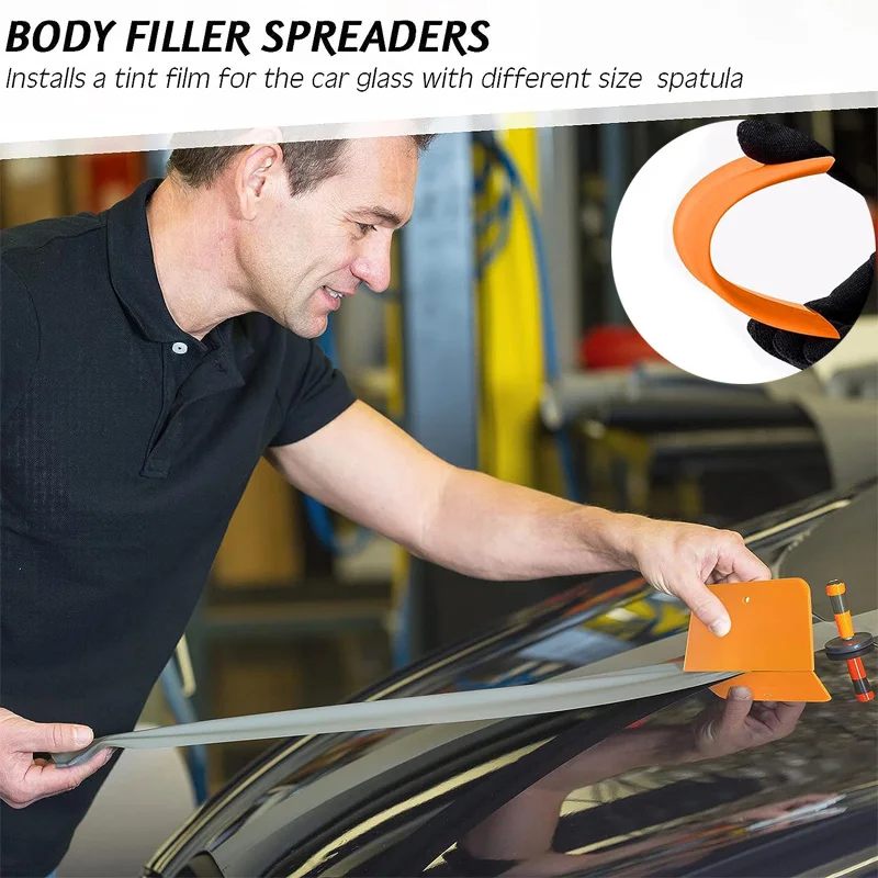 4.WIDLY APPLICATION – L’ensemble professionnel d’épandeurs de remplissage de carrosserie automobile peut être utilisé pour l’application de remplisseurs, glacés, putties, agents de calfeutrage, peinture et autres composés.Parfait pour l’entretien de la carrosserie automobile, l’emballage en vinyle de voiture, la couleur du film automobile, le collage du papier peint