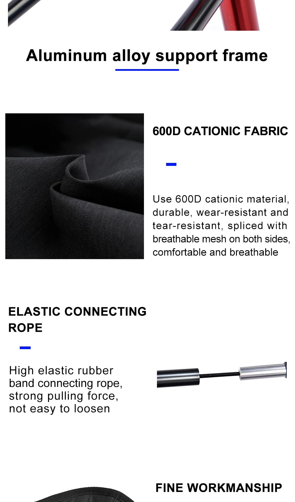 3. matériel: tissu oxford cationique résistant à la déchirure 600D, alliage d’aluminium