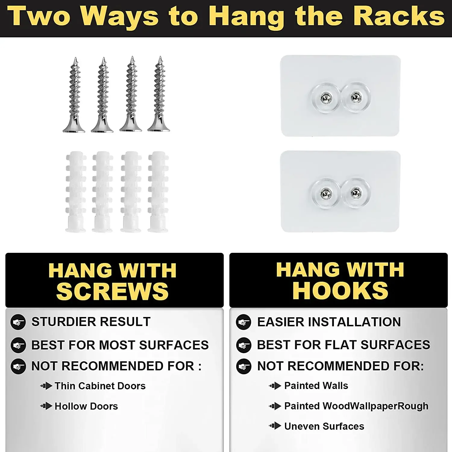 【Easy to Install】 Deux méthodes d’installation, fournir une solution de montage sans perçage sans endommager le mur. Ce crémaillère à épices suspendue peut également être installé en manière flexible et ferme avec des vis, tout pour enlever le nettoyage. Achetez en toute confiance, nous avons commandé pour fournir des produits de qualité.