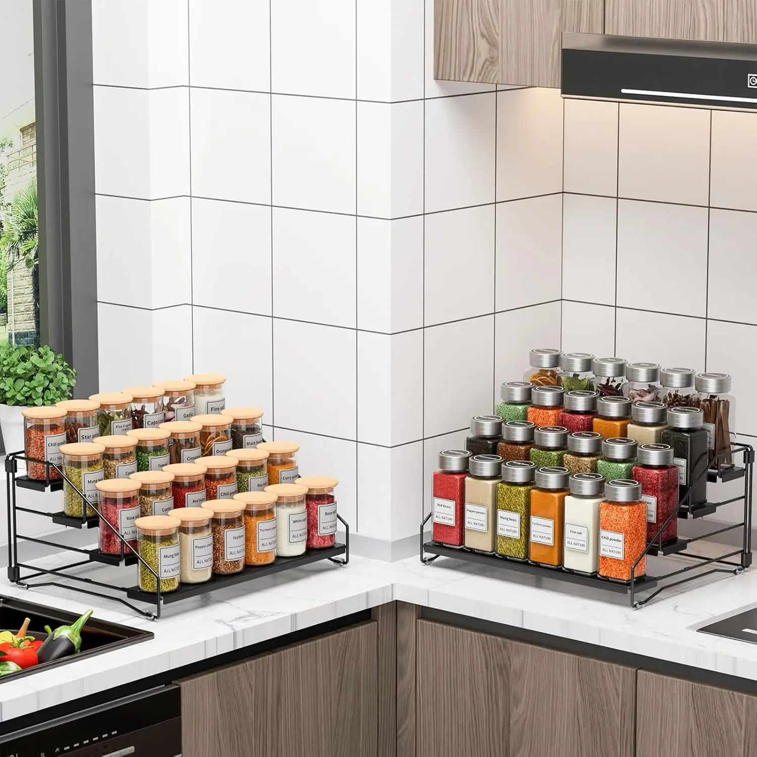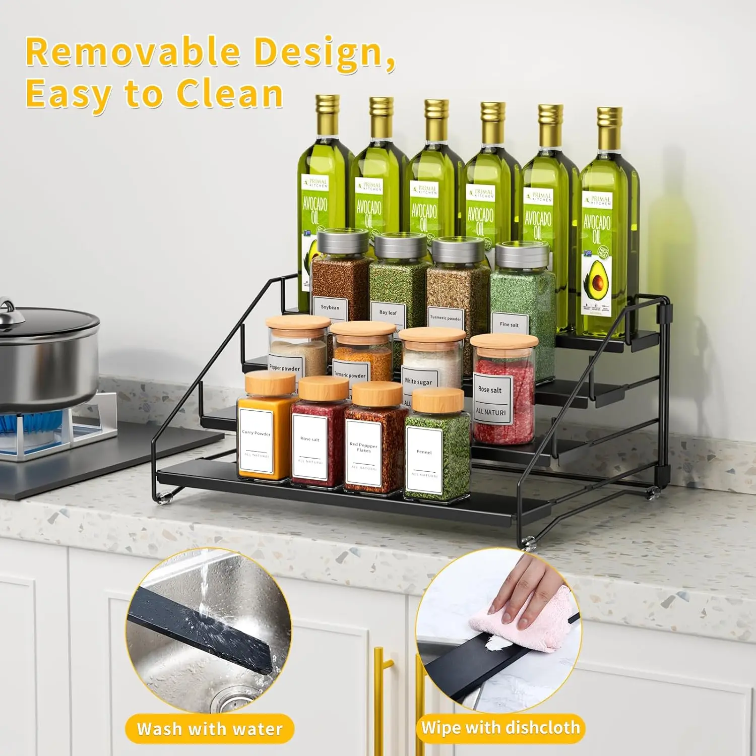【Conception d’étagère antidérapante – Fini les bouteilles basculantes】 Chaque niveau de ce support d’assaisonnement pour armoire est livré avec des coussinets antidérapants intégrés, aidant vos pots à épices à rester en place sans basculer.Une solution plus sûre et plus organisée pour votre cuisine avec cet organisateur d’épices pour armoire.