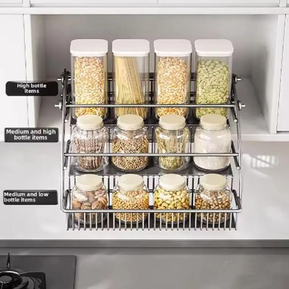 Package includes: 1Pc 3-Tier Pull Down Spice Rack