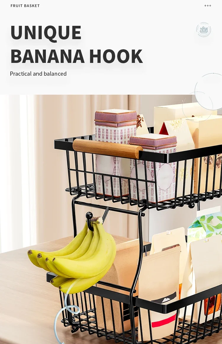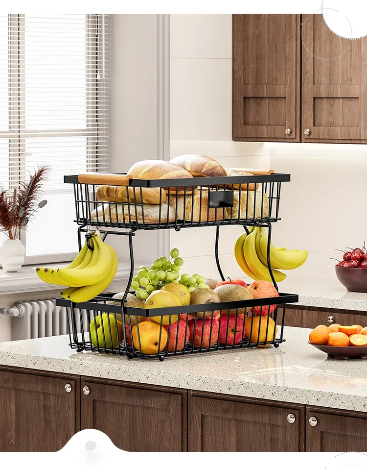 Support de rangement multifonctionnel : un aide fonctionnelle pour stocker soigneusement pas seulement vos fruits et légumes, mais aussi pain, collations, bouteilles d’épices ou articles de toilette, jouets, outils et plus.Utilisez-le dans la cuisine, le garde-manger ou la salle de bain, assez compacte pour s’adapter au comptoir, au table à manger ou au meuble.