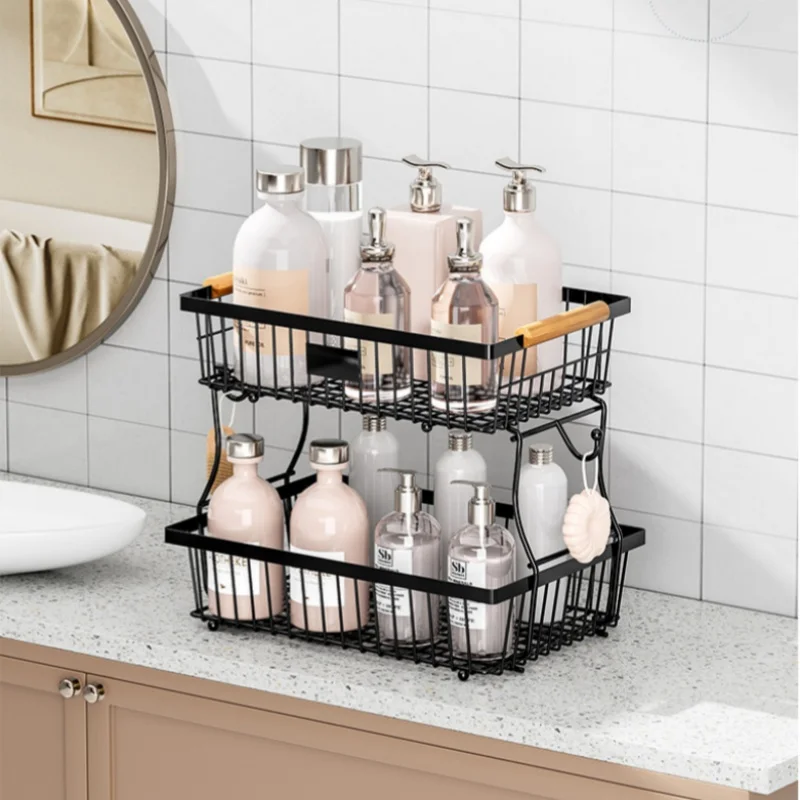 Étagère de rangement de cuisine Double couche d’assaisonnement des légumes et des Fruits, support d’assemblage de salle de bains, support amovible pour cosmétiques