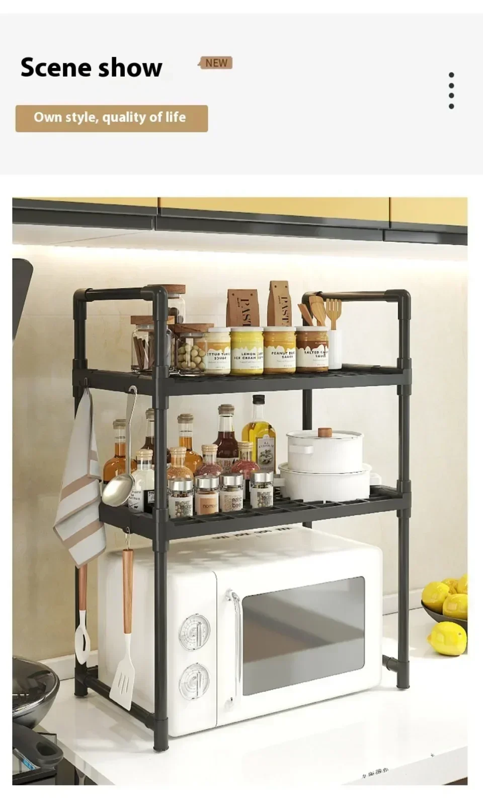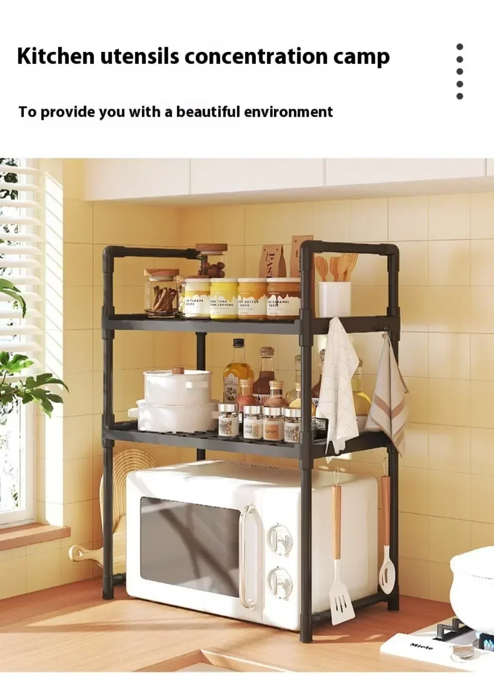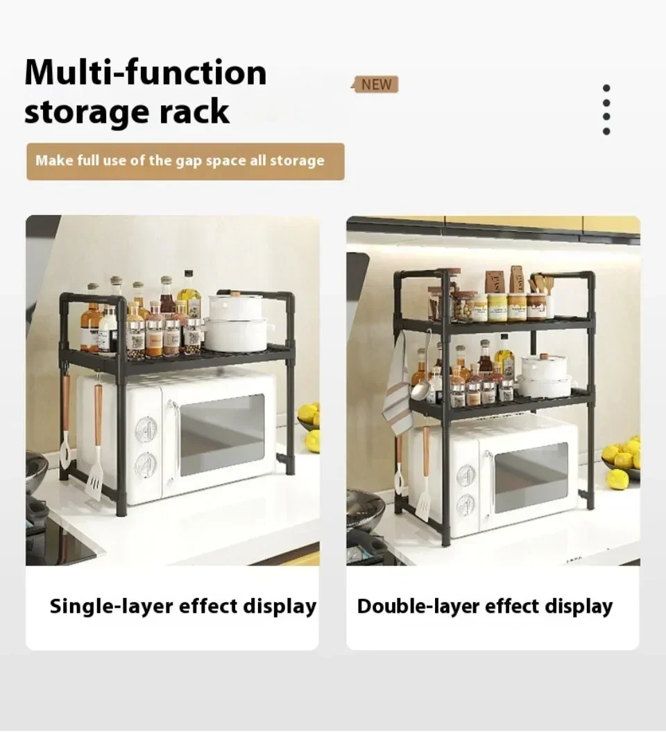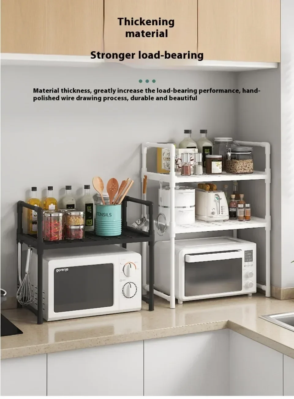 Support de rangement au sol de cuisine, support de four à Double couche, étagère à micro-ondes étanche et antirouille avec crochets, organisateur d’épices