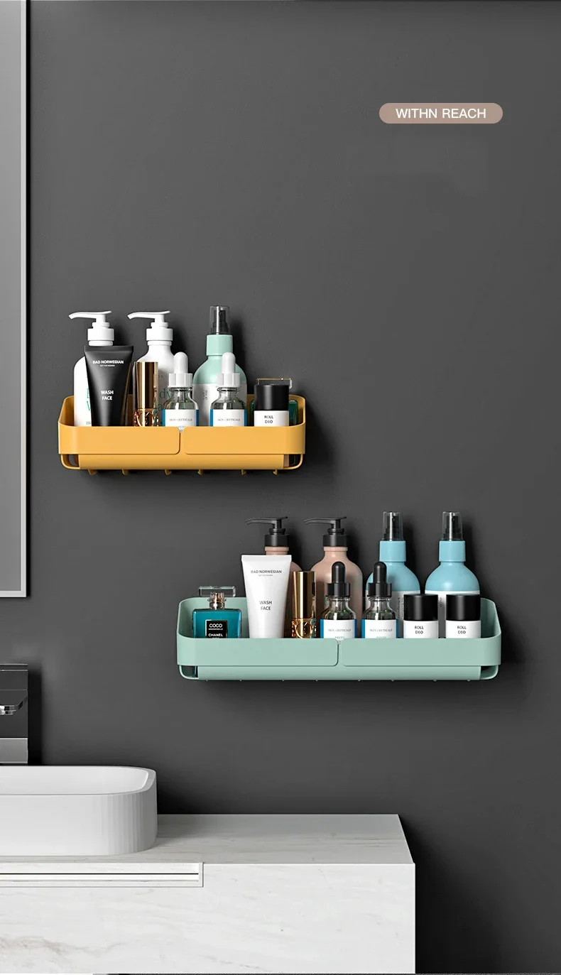 Étagère de rangement murale, organisateur d’épices pour cosmétiques, salle de bains sans perçage, accessoire de douche pratique pour cuisine, nouveauté 2024