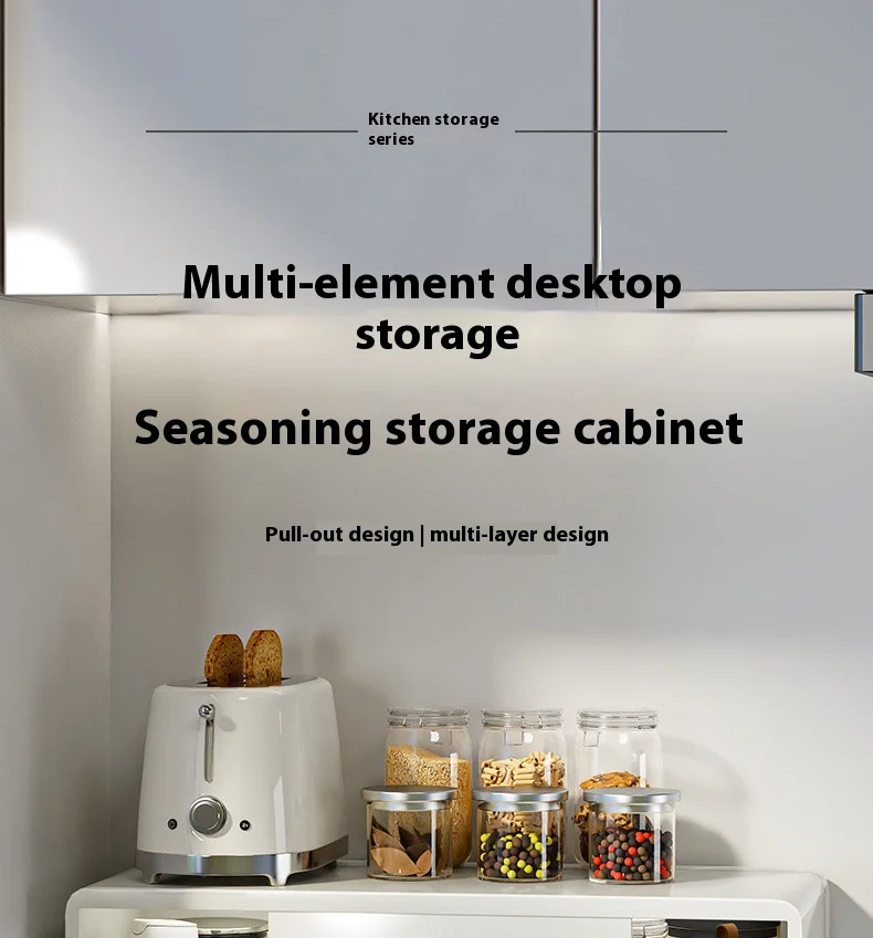 Étagère de rangement pour comptoir de cuisine, multifonctionnelle, pour épices, huile, sel, Sauce et vinaigre, anti-poussière, tasse d’eau, service à thé, organisateur