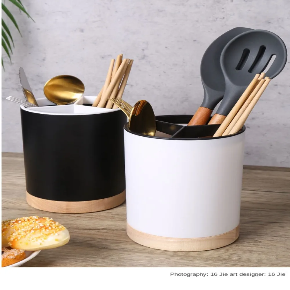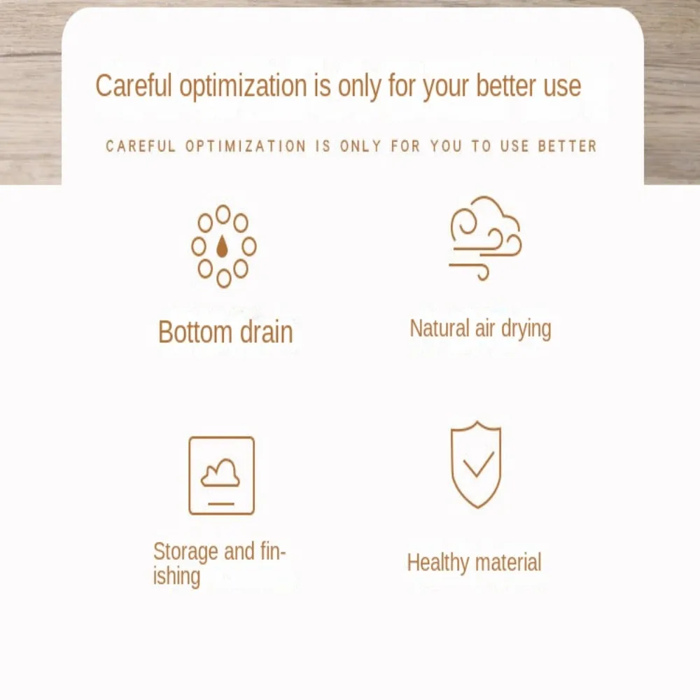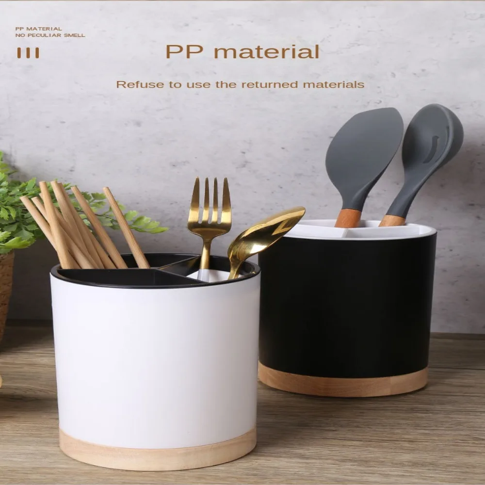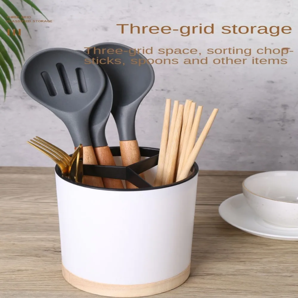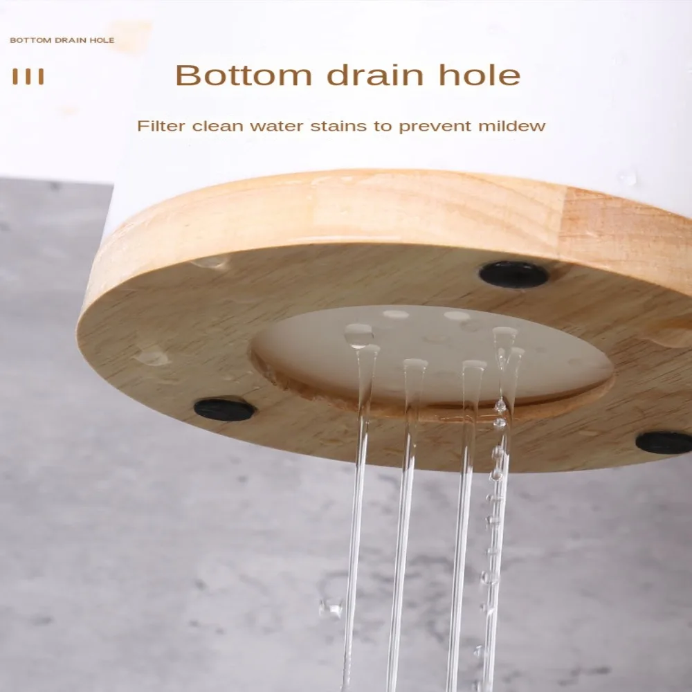 Porte-baguettes de vidange de grande capacité, trois compartiments pour le stockage, PP + bûche matériau sain, durable, vidange rapide, revêtement imperméable à l’eau, moisi et sans goût, détachable, facile à nettoyer.