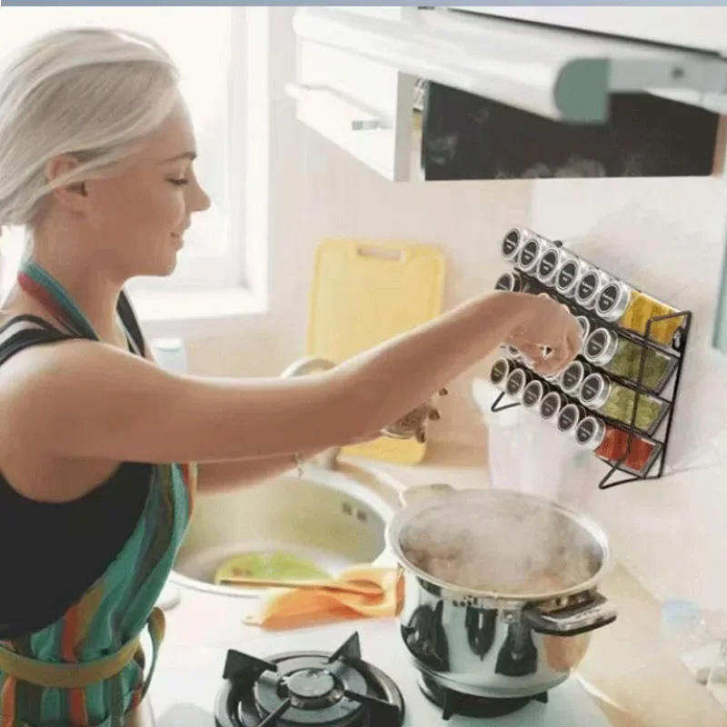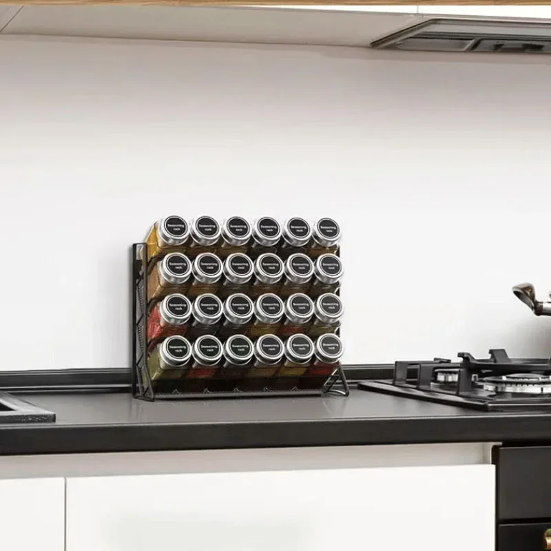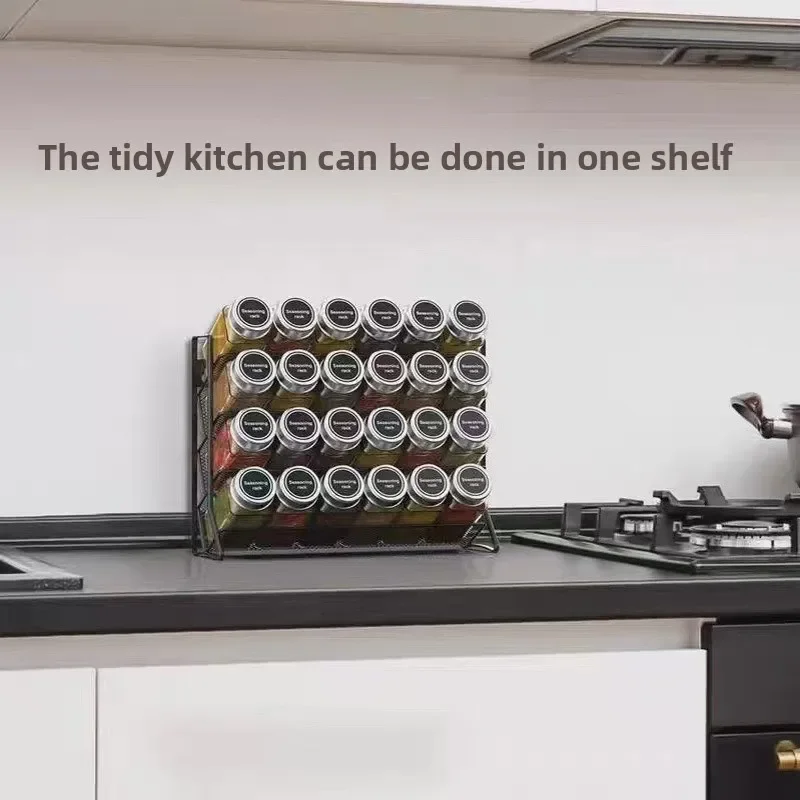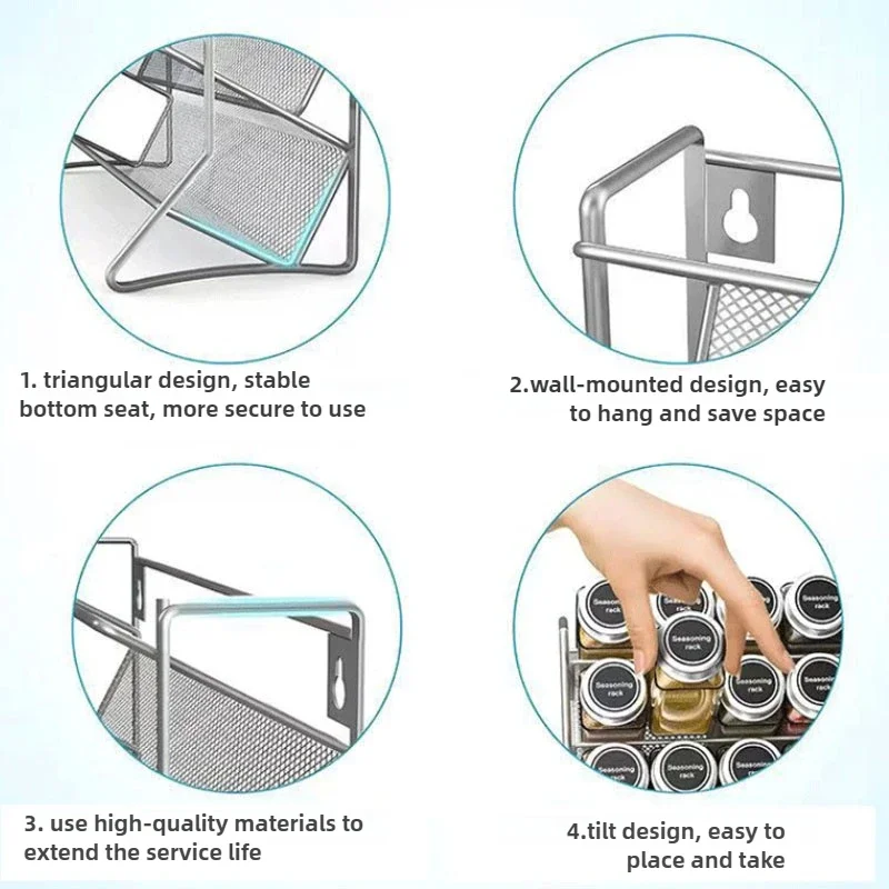 Description: Kitchen cabinet organizer, wall mounted spice rack, shelves.