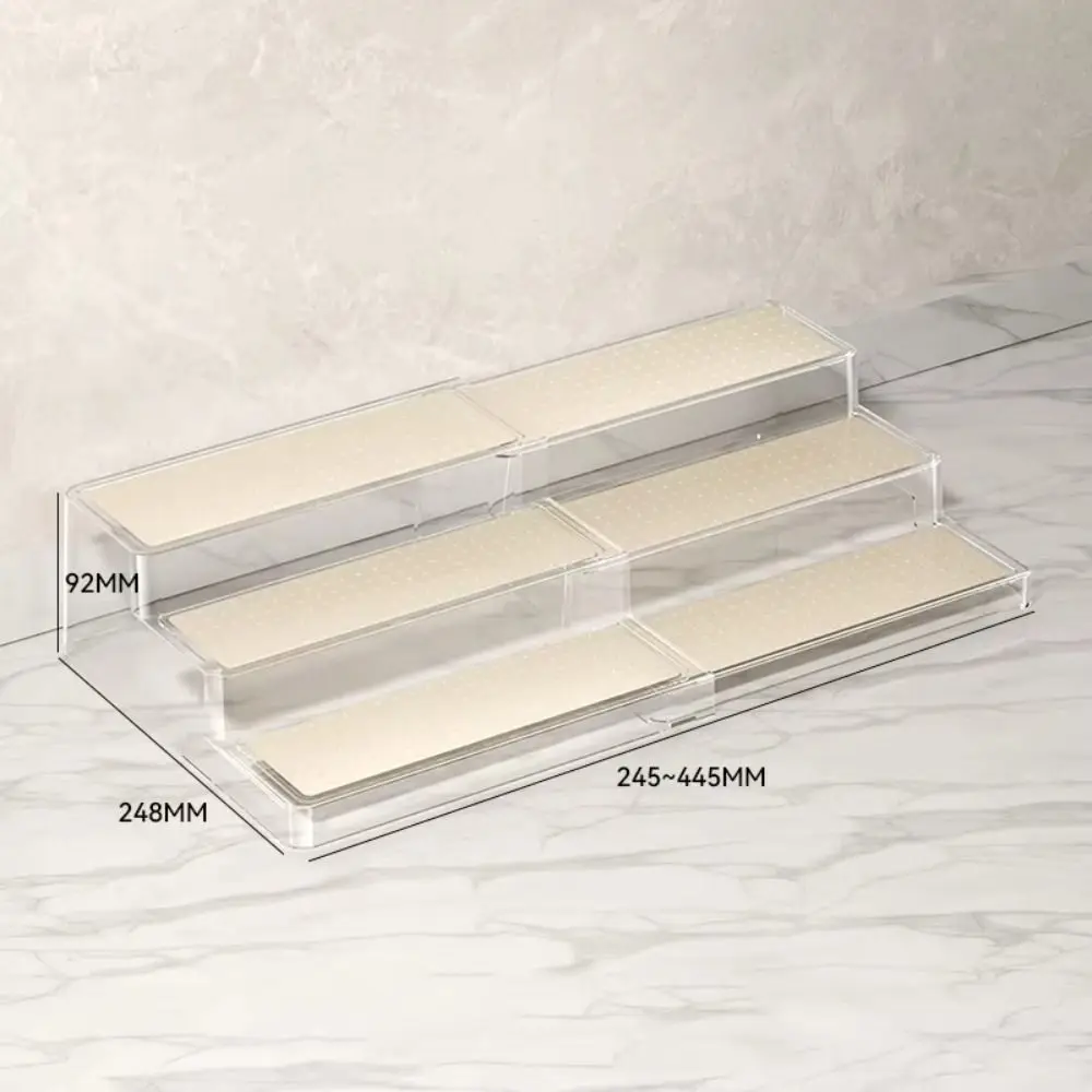 A Versatile Shelf Organizer Rack: With 3 flexible levels, this cabinet organization shelf is a perfect holder for anything from spice jars and condiments to perfumes and supplement bottles.