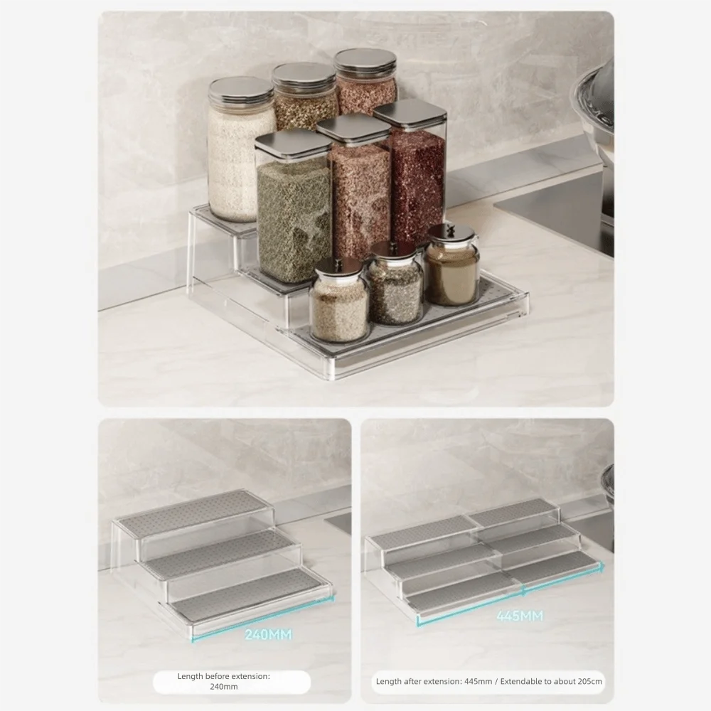 Rangement extensible pour les épices : notre étagère à épices à 3 niveaux peut être étendue, garantissant qu’elle peut s’adapter à vos besoins de stockage spécifiques pour votre garde-manger, armoire, placard ou comptoir.