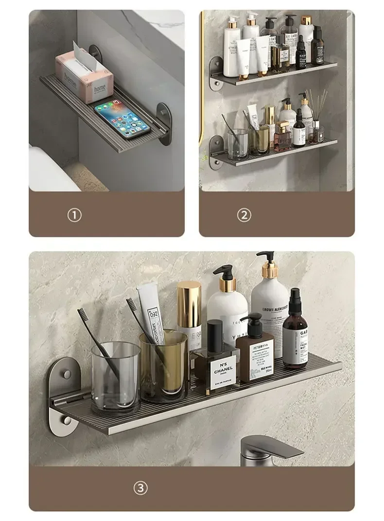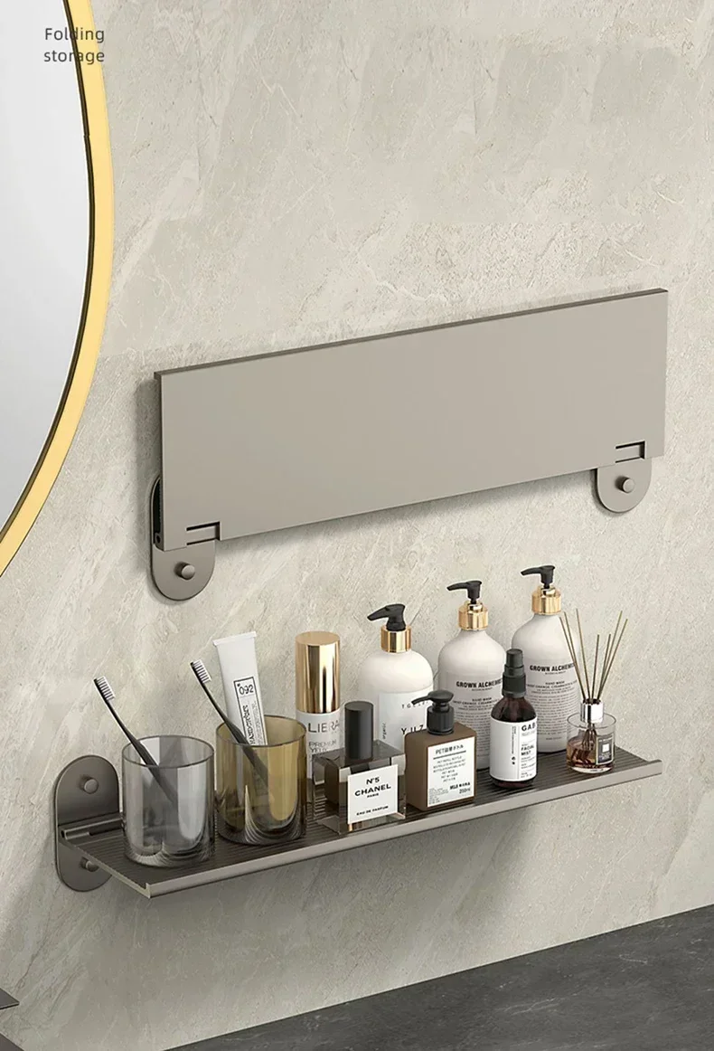 Étagère de rangement murale pour salle de bain Punch-Alumimum Lavabo pliable Organisateurs de cosmétiques Étagères pratiques modernes nordiques élégantes