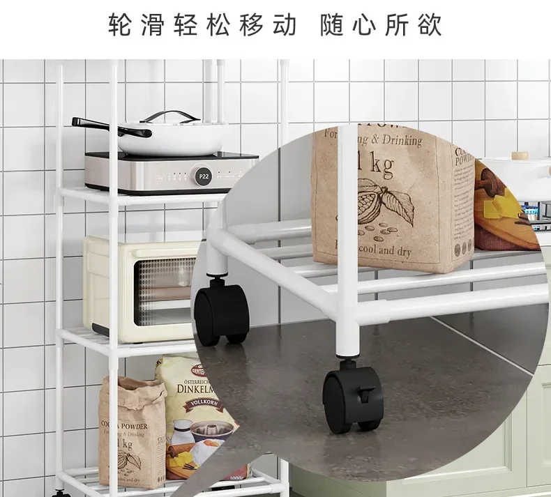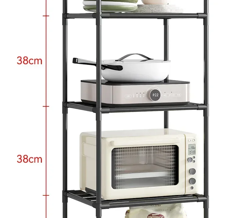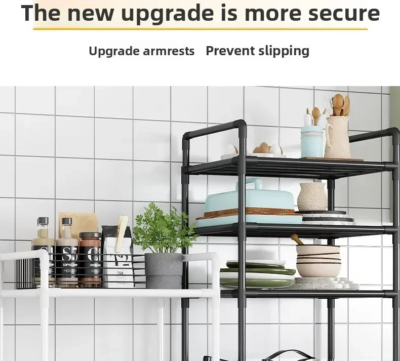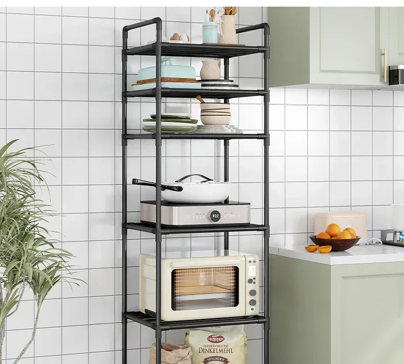Étagère rangement six niveaux cuisine maison acier noir mat plateaux grillagés roulettes mobile large centrales compatibles microondes casseroles provisions époxy |