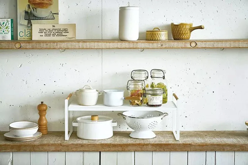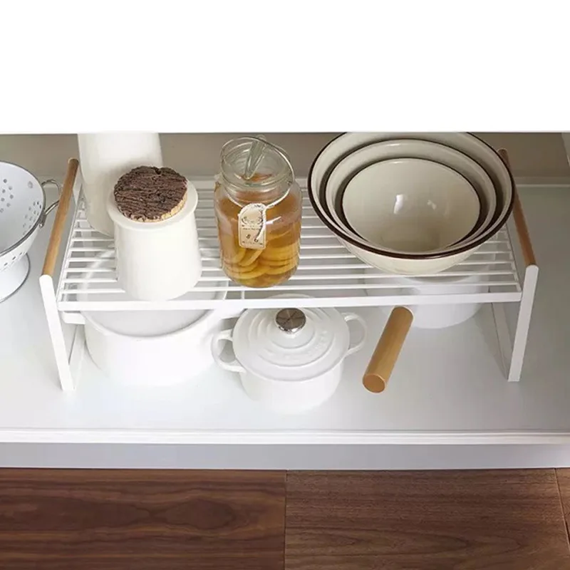 Étagères de cuisine avec poignée en bois, support métallique de rangement, armoire murale de bureau à domicile, support d’ustensiles de cuisine, étagère de salle de bain permettant de gagner de l’espace