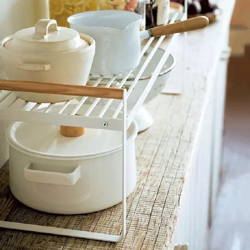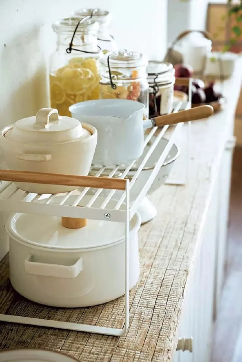 Ce support comprend un charmant manche en bois, ajout d’une touche de chaleur et de style à sa construction métallique robuste. Dans la cuisine, elle sert comme un porte-ustensiles de cuisine parfait. Gardez vos pots, casseroles et ustensiles organisés et facilement accessibles, économisant de l’espace de comptoir valieux.