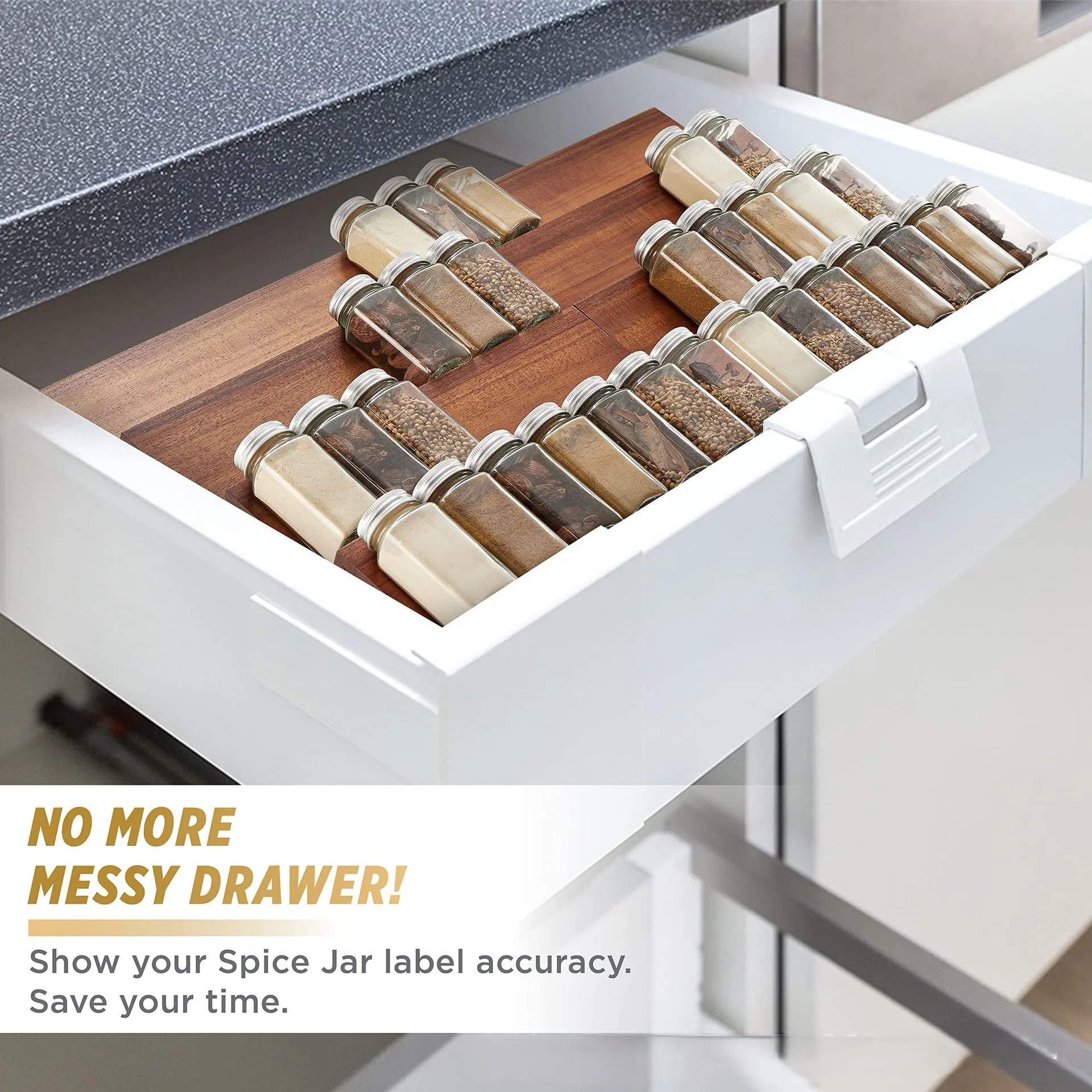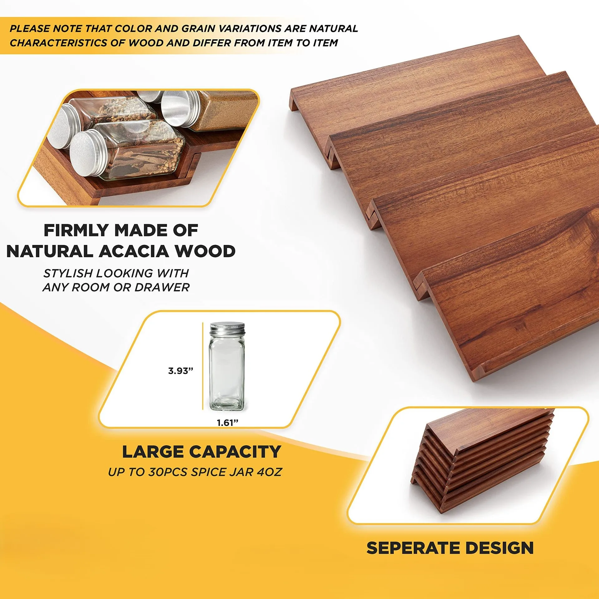 Organisateur de support à épices à 4 niveaux pour tiroir, plateau en bois d’acacia, support à épices, organisateur pour armoire, étagère de rangement, organisateur de tiroir à épices