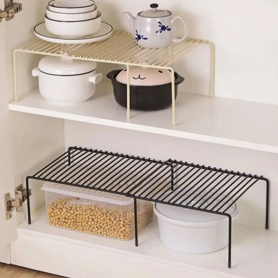 [Stockage fonctionnel] Empilez les assaisonnements, les tasses, les bols sur l’étagère tout en rangeant d’autres ustensiles de cuisine en dessous. Idéal pour les espaces avec des étagères limitées. Flexibilité pour réorganiser et organiser la vaisselle, les tasses, les bols, les assiettes, la nourriture, les épices, etc.
