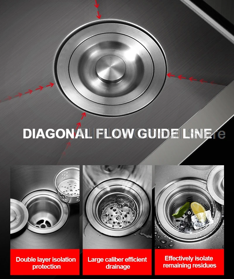 5. Drainage lisse: l’évier de cuisine a un fond légèrement incliné et une piste spécifique en forme de X pour drainer rapidement l’eau et les débris dans l’évier pour augmenter votre productivité.