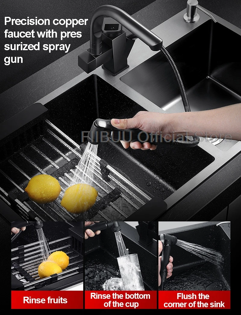 1. Utilisation: Notre gamme d’éviers de cuisine soutiendra votre cuisine. Peut laver la vaisselle, les fruits et les légumes. Il peut également être utilisé dans les bars, les cuisines, les buanderies, les espaces extérieurs et publics pour ajouter une atmosphère élégante.