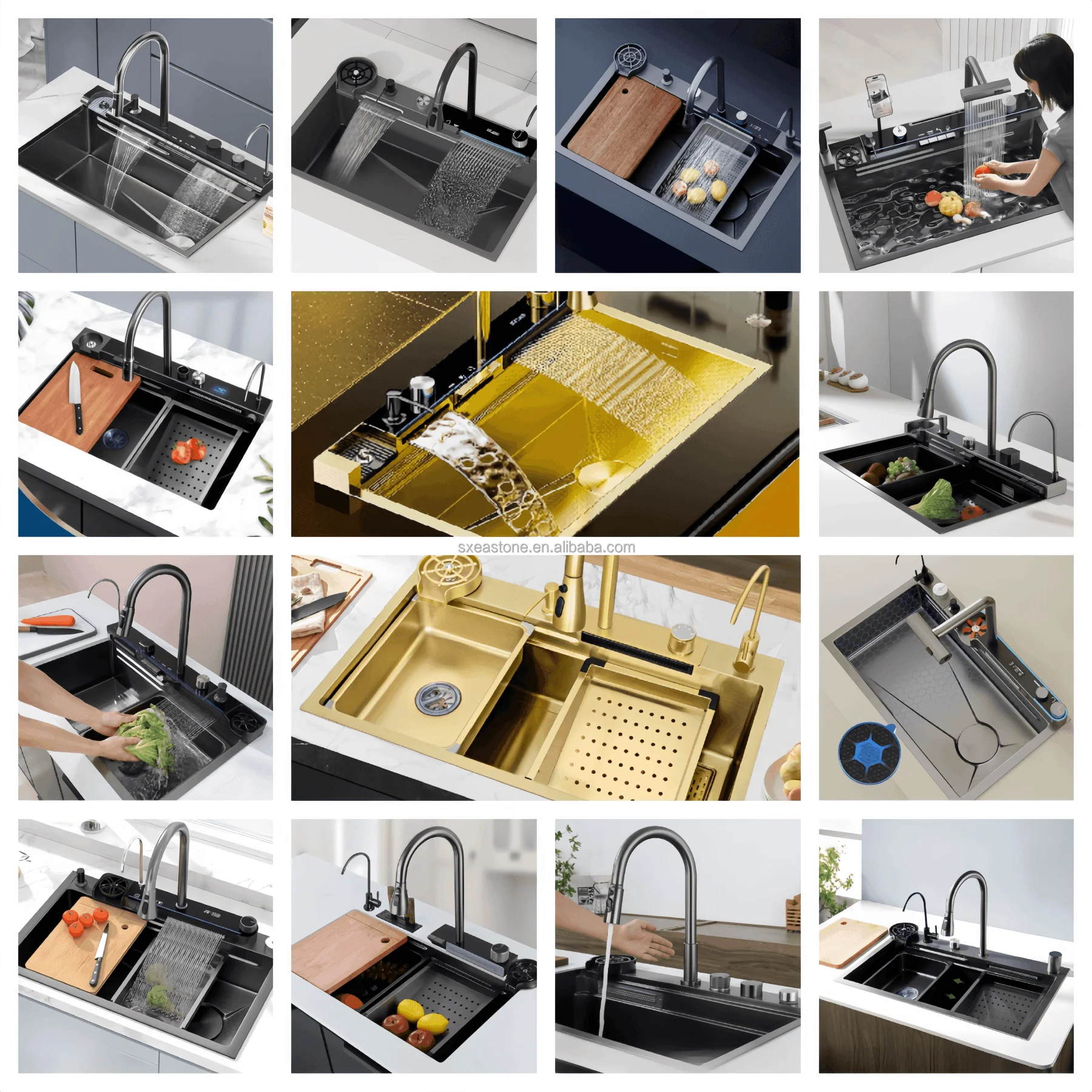 warerfall digital kitchen sink/strainer/draining pipe/small basin/cutting board/valve/table control/draining basket…,etc