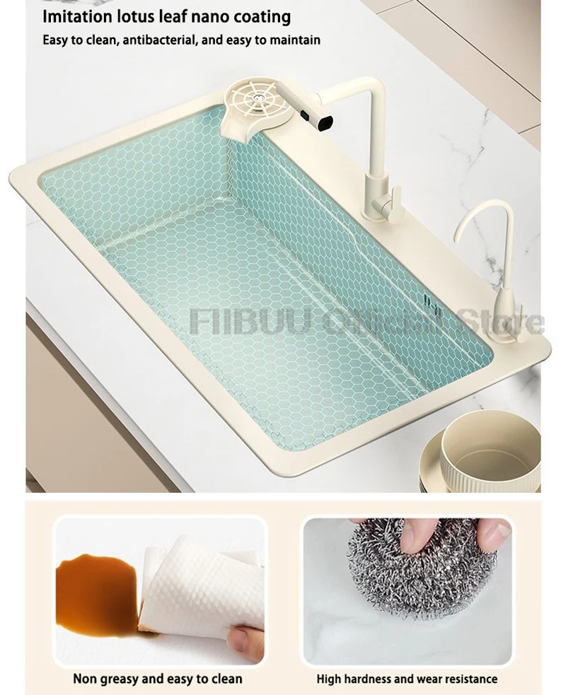 【À la mode】Cet évier jaune crème est à la mode et durable. Il n’a pas l’air sale et est visuellement beau et généreux. Il a également un fort sens de la mode et est très durable.