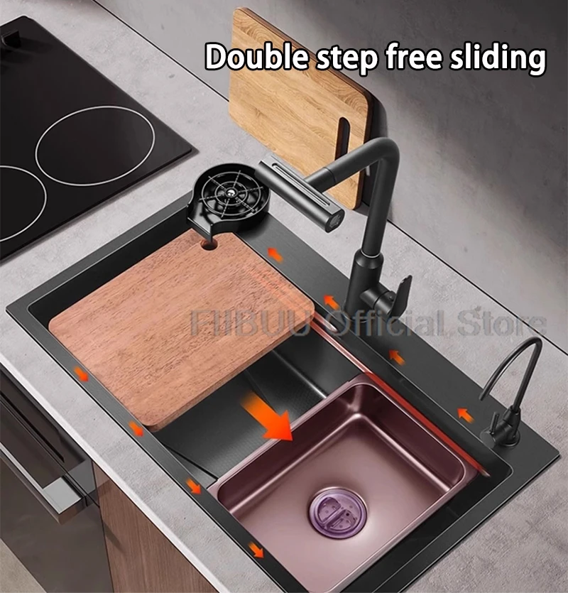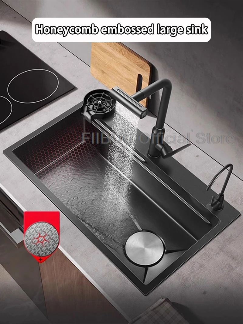 【Évier de haute qualité】 Fabriqué en acier inoxydable 304, épaissi et renforcé. Résiste à la déformation et a une résistance à l’usure plus forte.