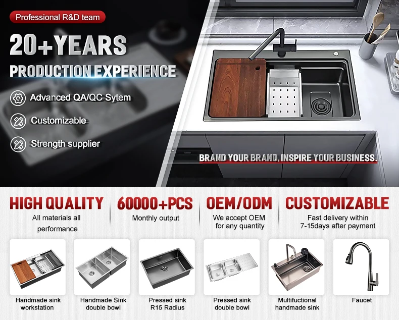 Éviers faits à la main en acier inoxydable, 10.000 pièces par mois