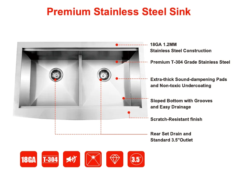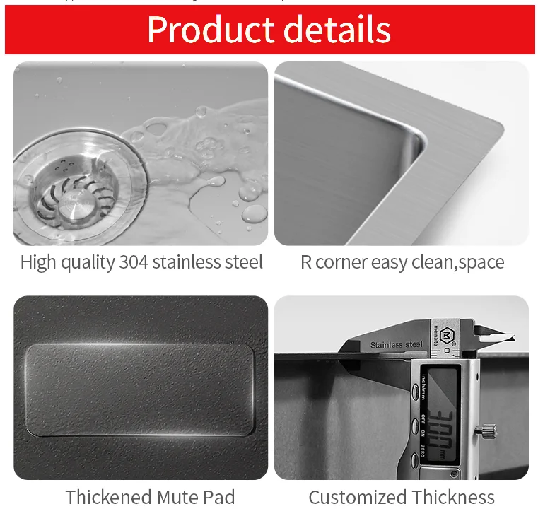 Éviers faits à la main en acier inoxydable, 10.000 pièces par mois