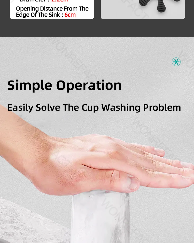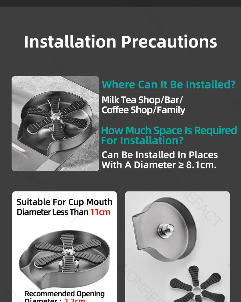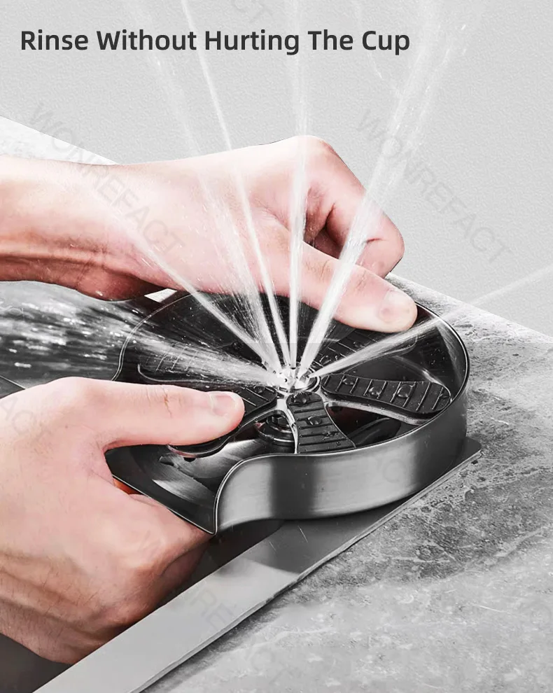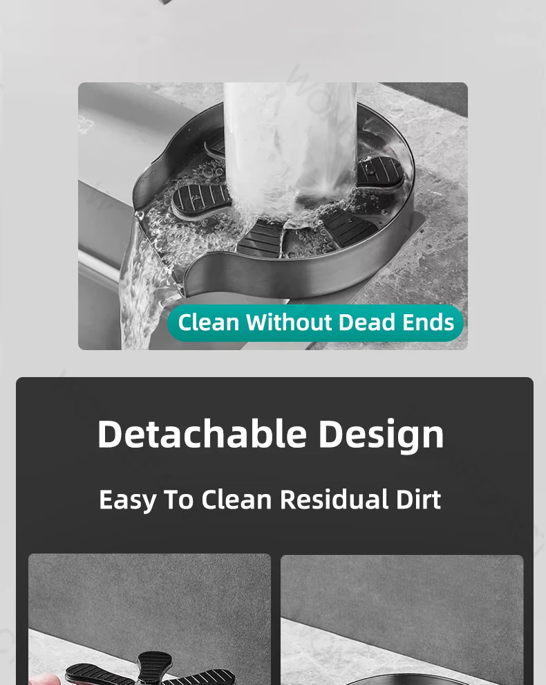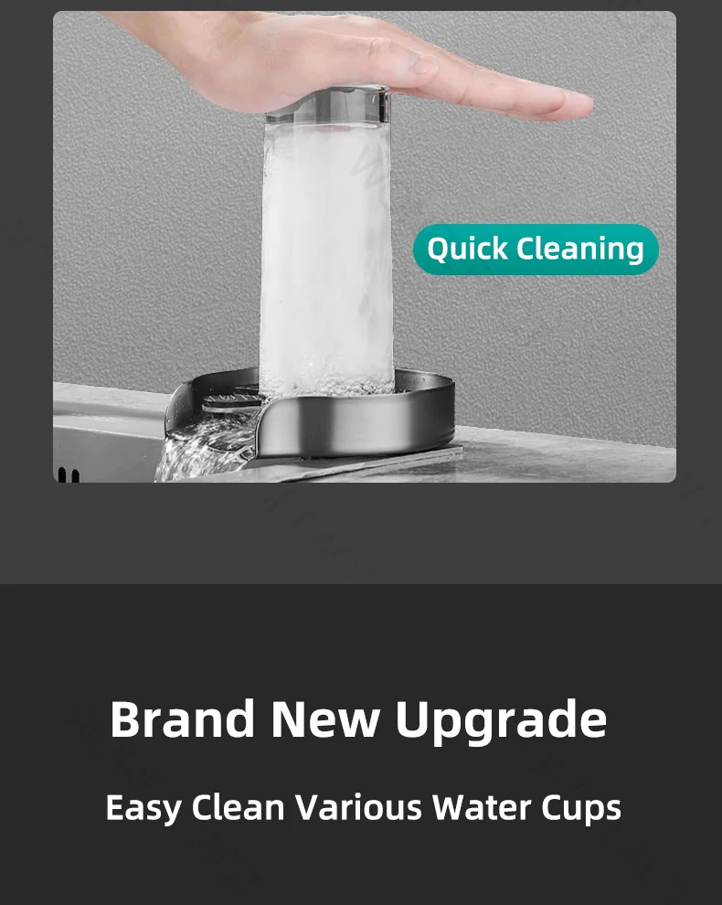 Le nettoyage peut généralement être fait en utilisant la pression de l’eau du robinet. Avec l’embouchure de la tasse vers le bas, appuyez légèrement sur le fond de la tasse pour pulvériser automatiquement de l’eau pour la nettoyer. Après avoir nettoyé la tasse, sortez la tasse, arrêtez de pulvériser de l’eau et le nettoyage est terminé.