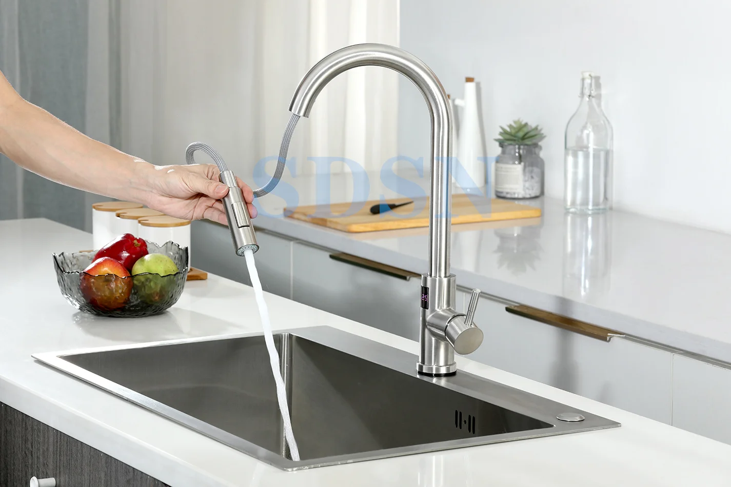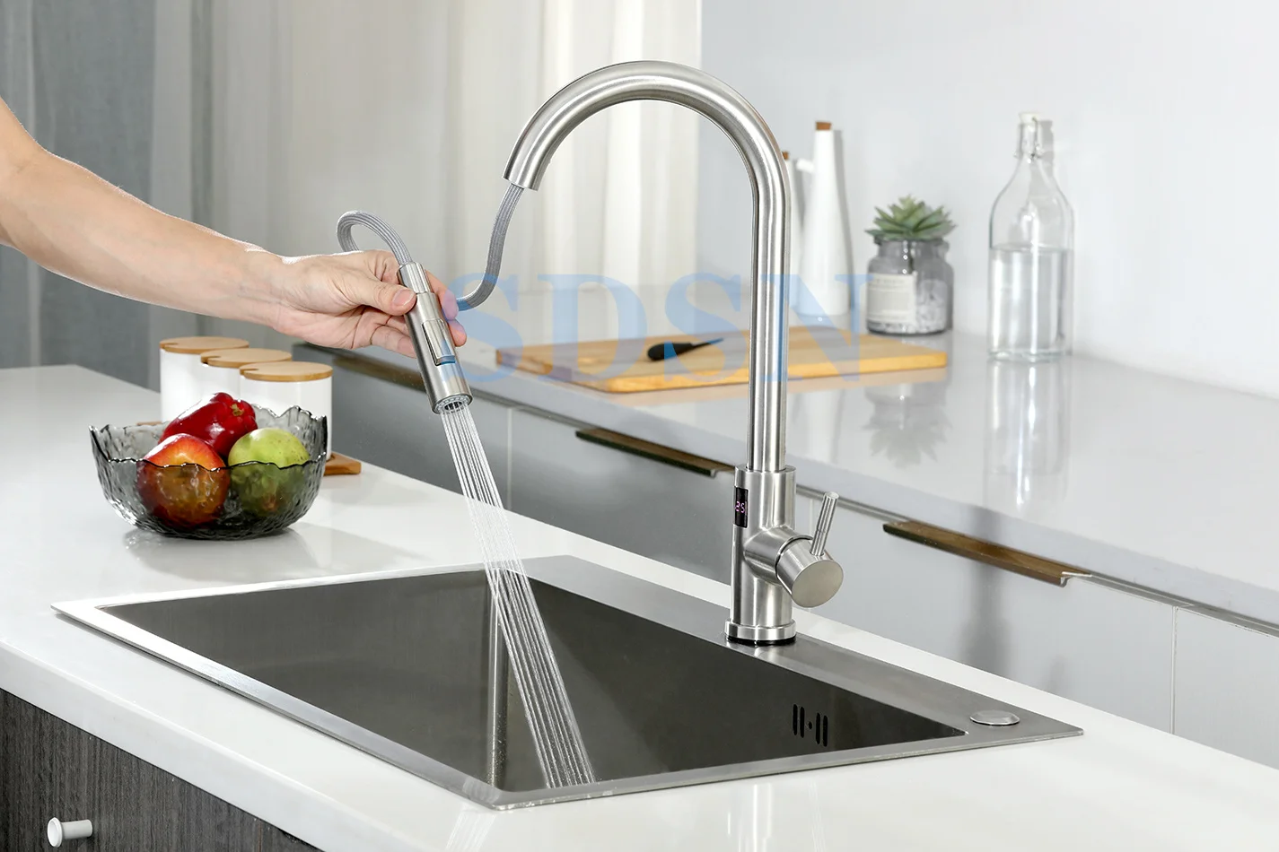 [Smudge and Fingerprint Free]: parce que notre robinet de cuisine à activation tactile est fini nickel brossé, la surface n’aura pas d’empreintes digitales afin que vous puissiez garder votre robinet intelligent propre