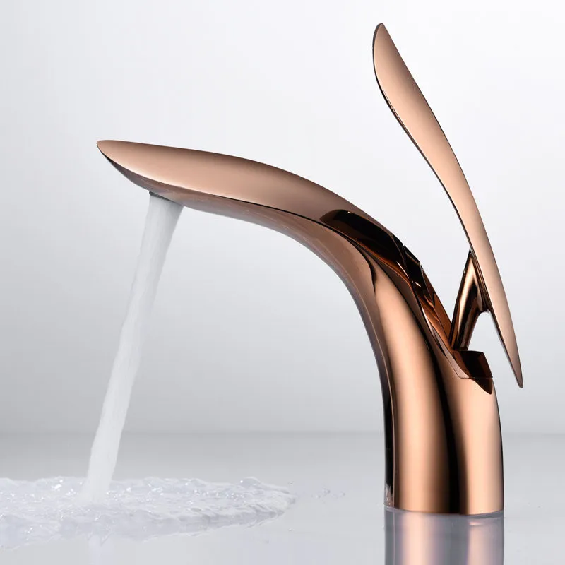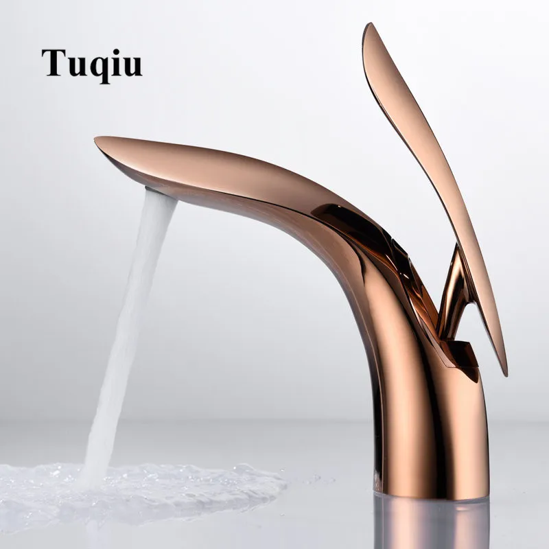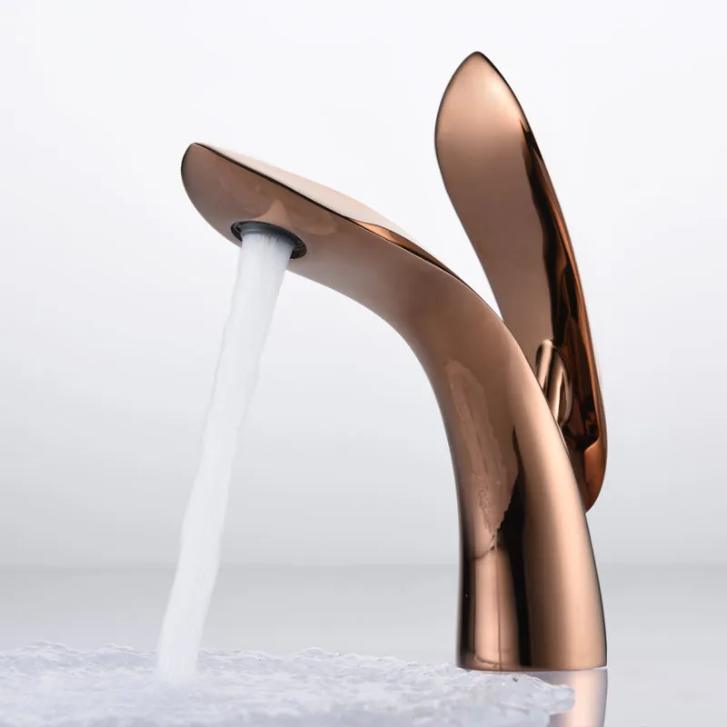 Évier en cuivre rose doré, robinet de centre commercial, évier de toilette, poignée unique chaude et froide, forme de cuir chevelu, 5 couleursÉvier en cuivre rose doré, robinet de centre commercial, évier de toilette, poignée unique chaude et froide, forme de cuir chevelu, 5 couleurs