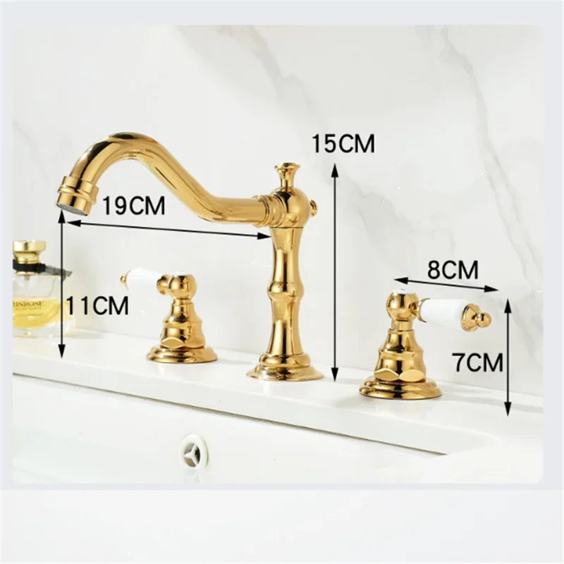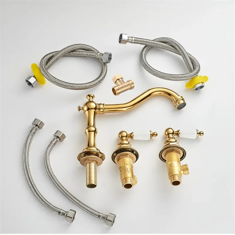 Tuqiu or robinet de salle de bain robinet de lavabo Antique en laiton Chrome robinet d’évier 3 trous répandu robinet de lavage chaud et froid robinet d’eau