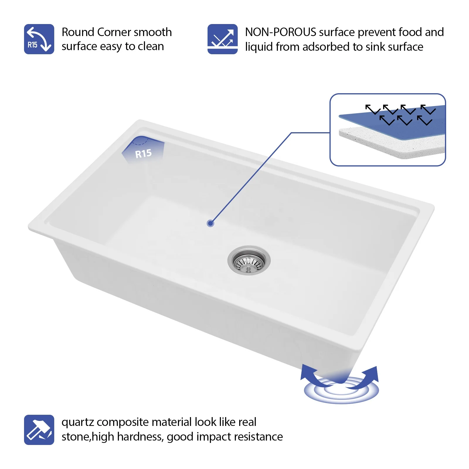 A : Veuillez vous assurer que la taille de la base de votre armoire est de 3 pouces plus grande que la largeur d’évier (gauche à droite) pour une bonne installation de clips et une bienvenue pour choisir l’évier parfait de notre magasin.