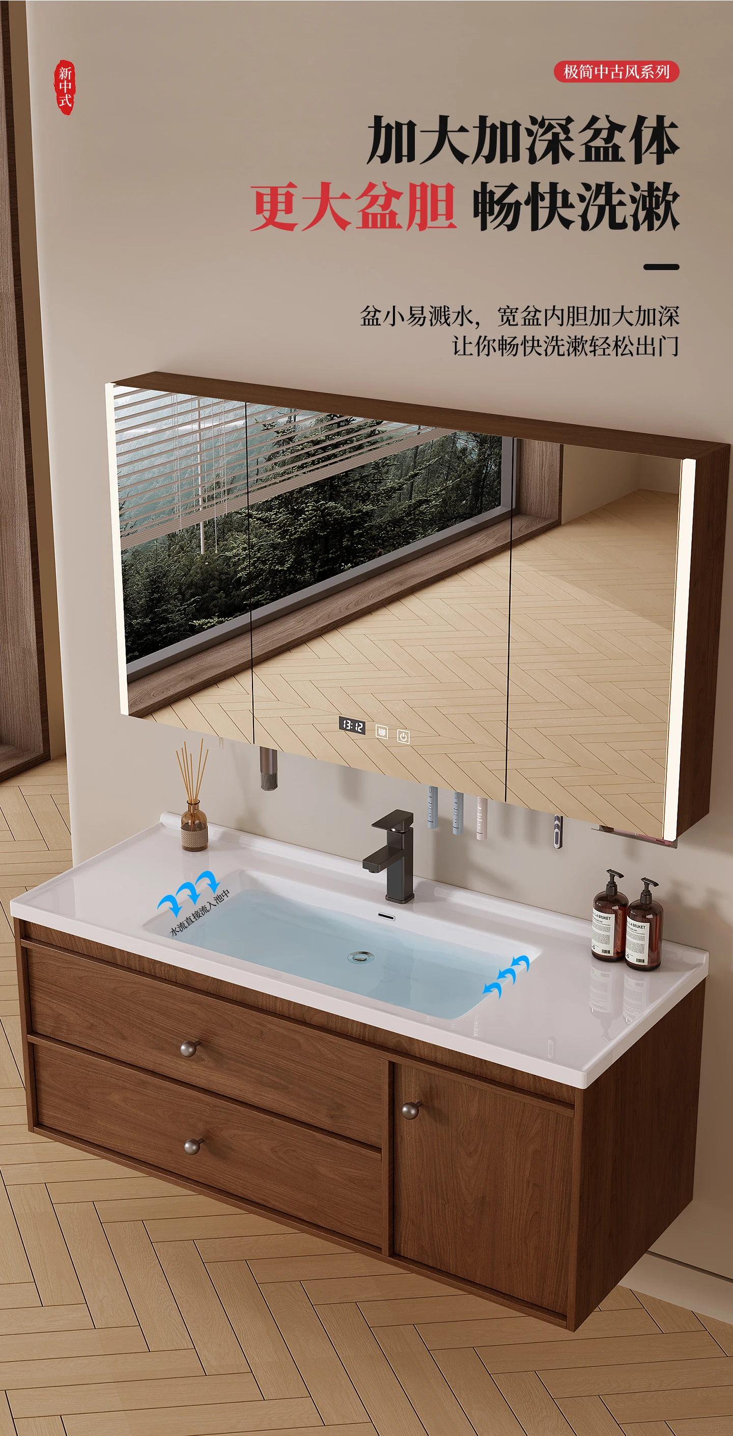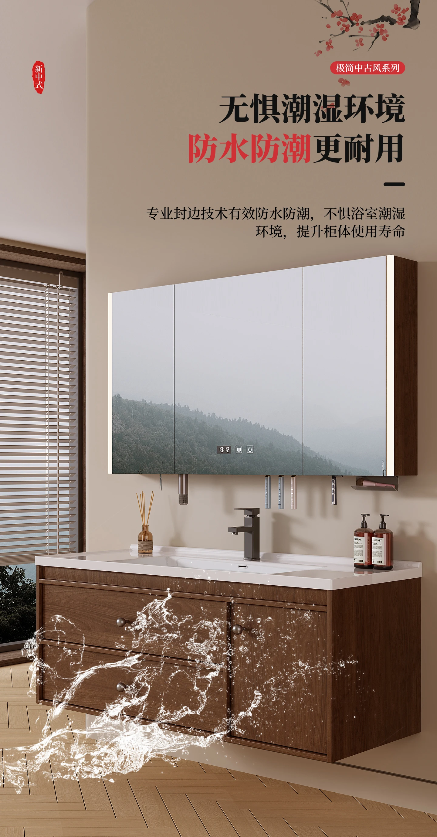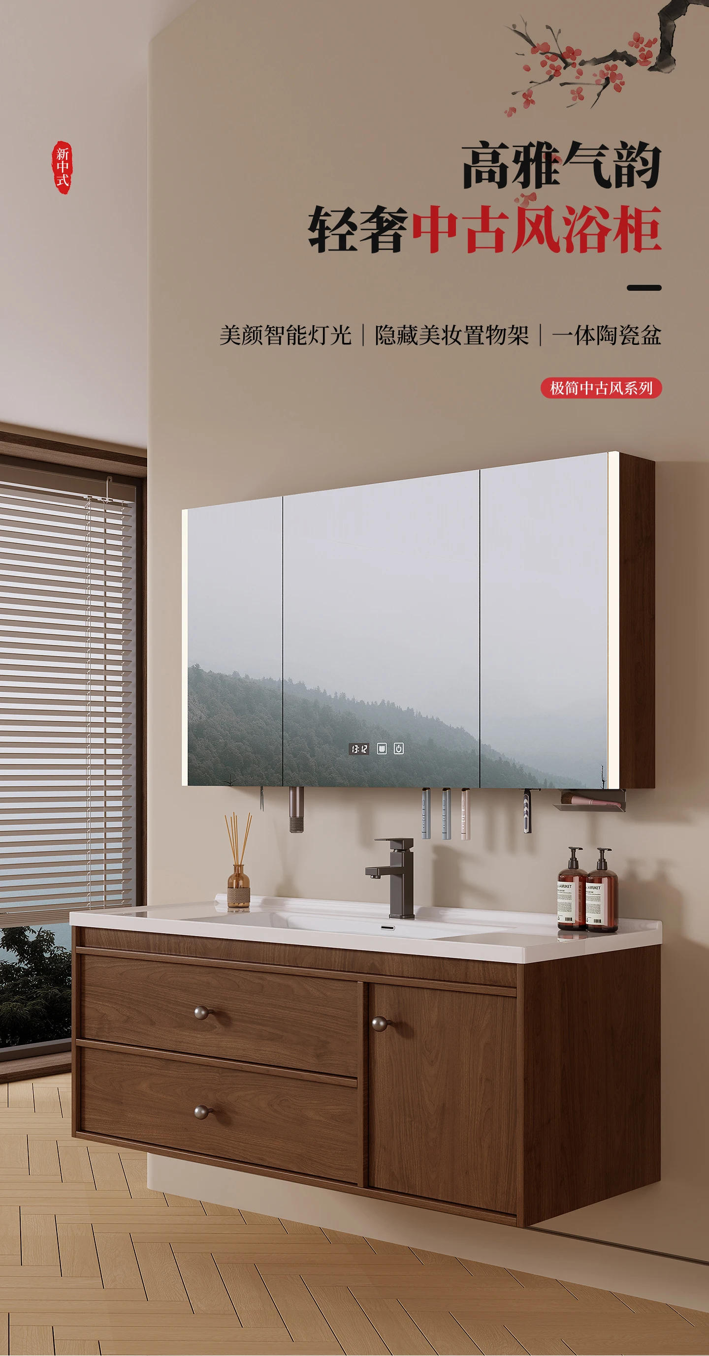 - combined form: (main cabinet + mirror cabinet + basin) a complete set