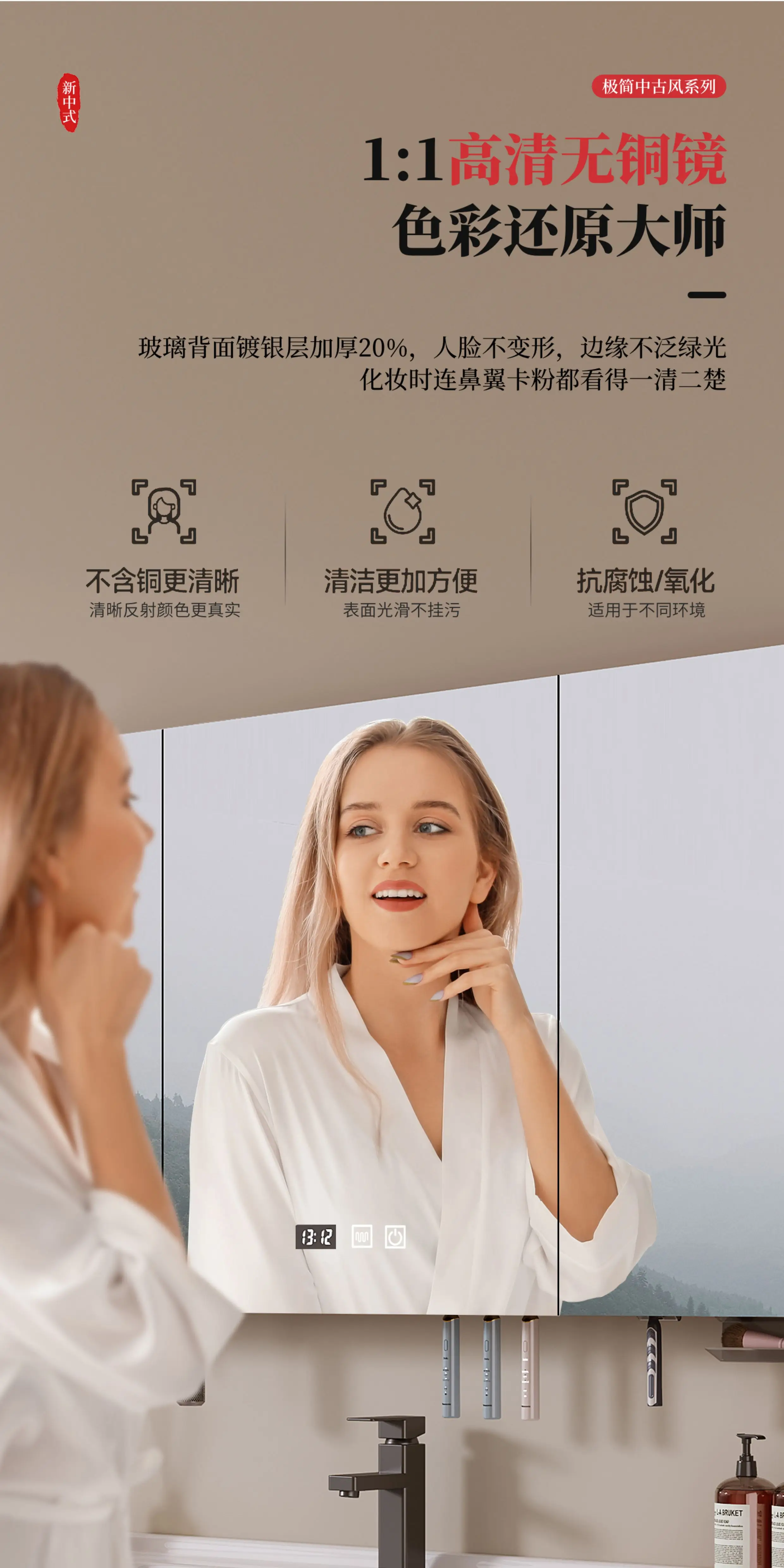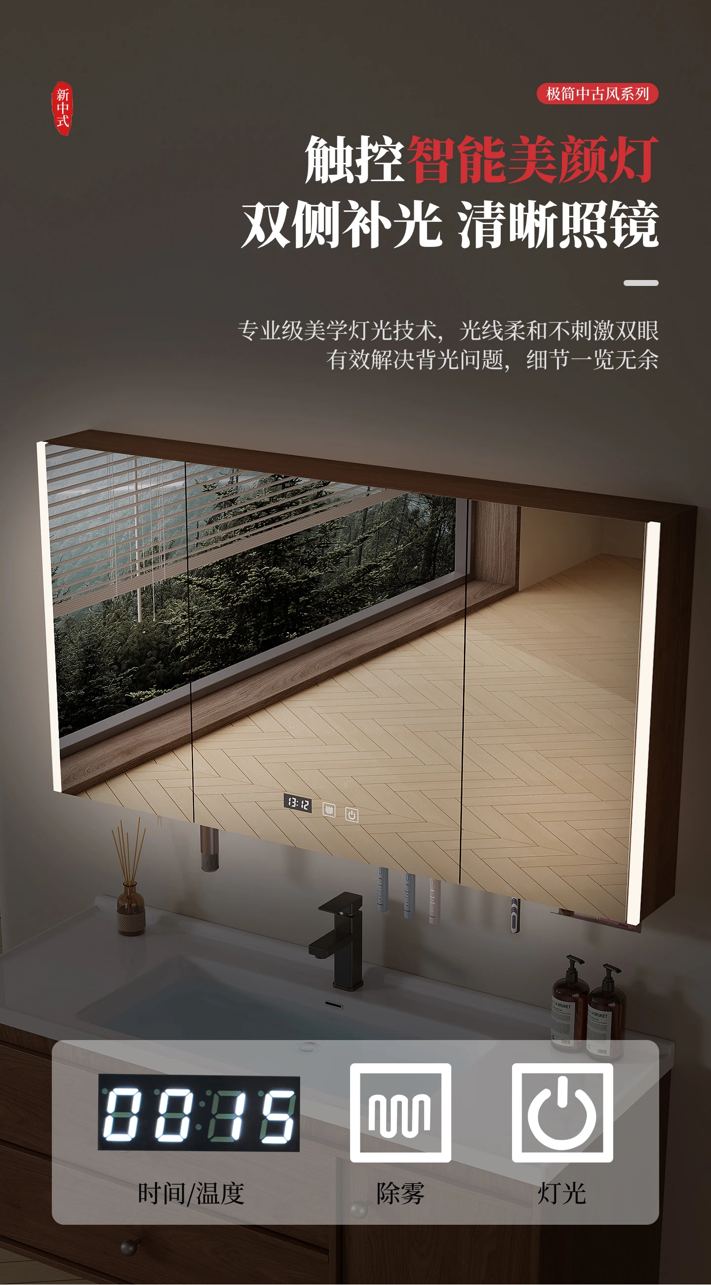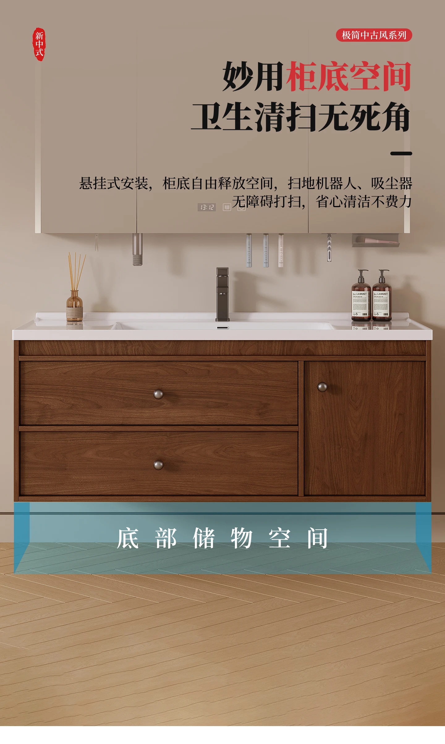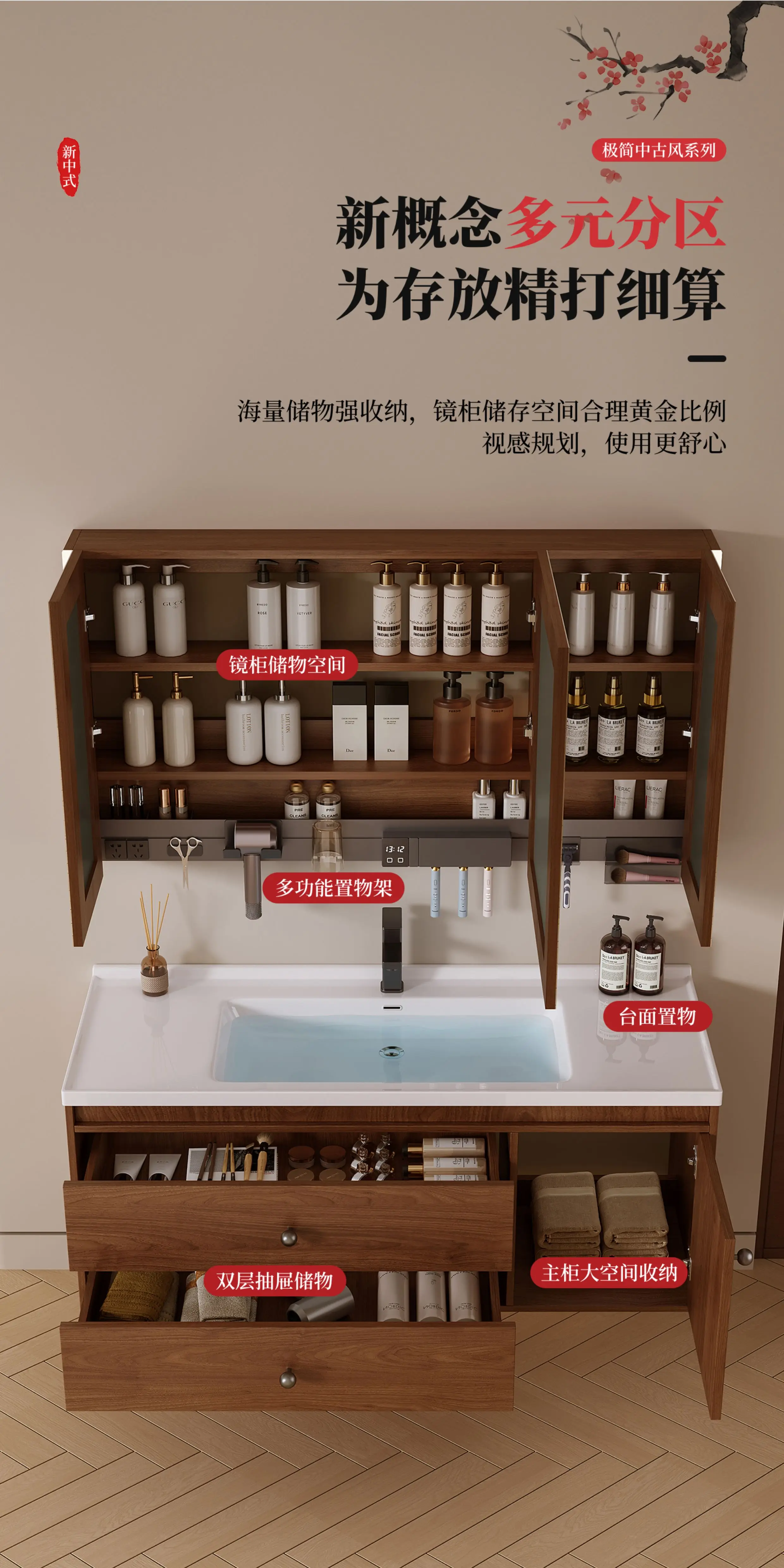 - combined form: (main cabinet + mirror cabinet + basin) a complete set