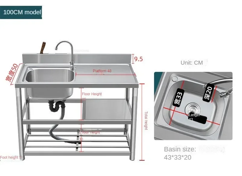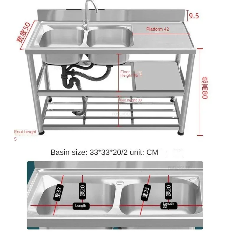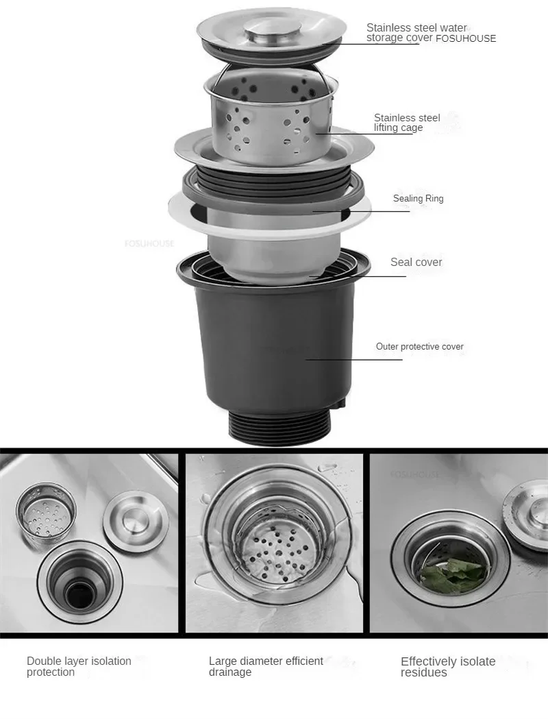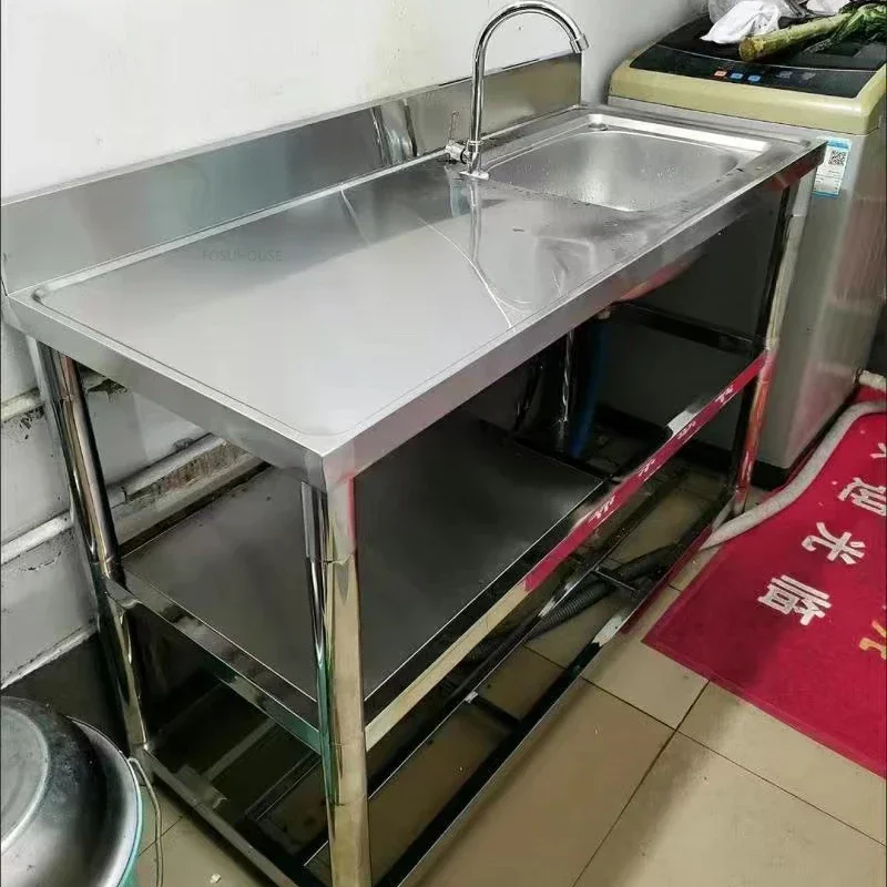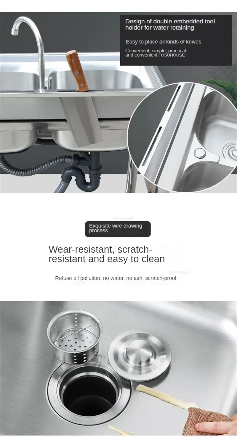 Évier de cuisine en acier inoxydable 304 avec support, rangement créatif à trois couches, lavabo intégré, accessoires de cuisine modernes pour la maison