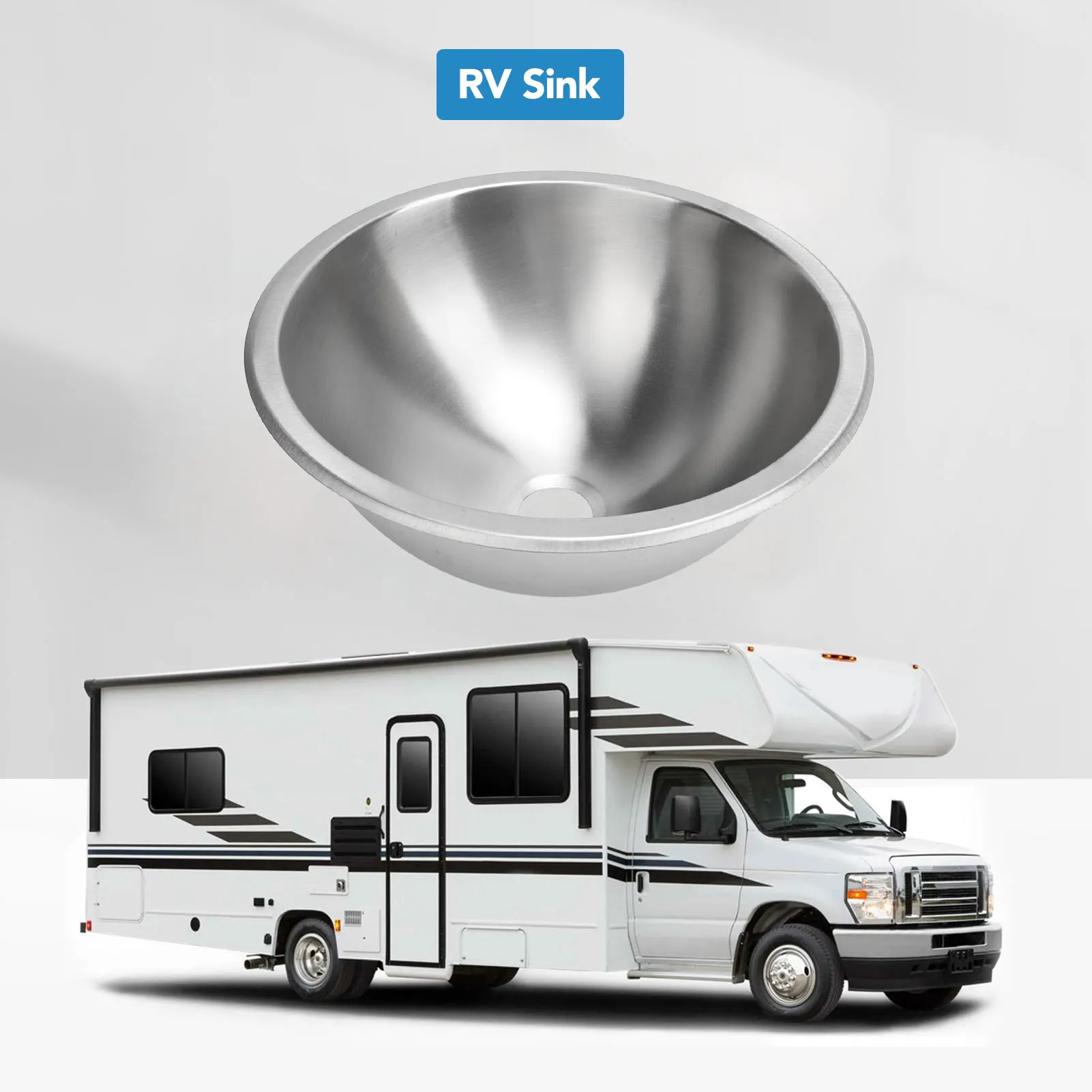 Évier rond de camping-car de 12 pouces en acier inoxydable 304 évier de cuisine lavabo à main avec sortie d’égout de 40mm pour bateau caravane camping-car