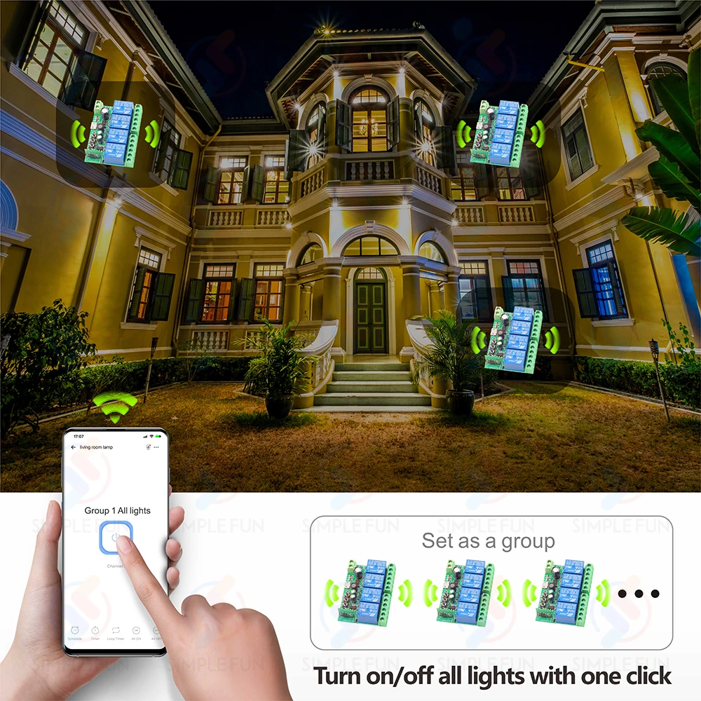 Par exemple, toutes les lampes intelligentes peuvent être définies en tant que groupe et éteintes en un seul clic. Un commutateur intelligent peut être contrôlé par plusieurs téléphones mobiles. Partagez-le avec votre famille et rendez-le facile à contrôler pour tout le monde. Idéal pour les lumières difficiles à atteindre sans interrupteur.
