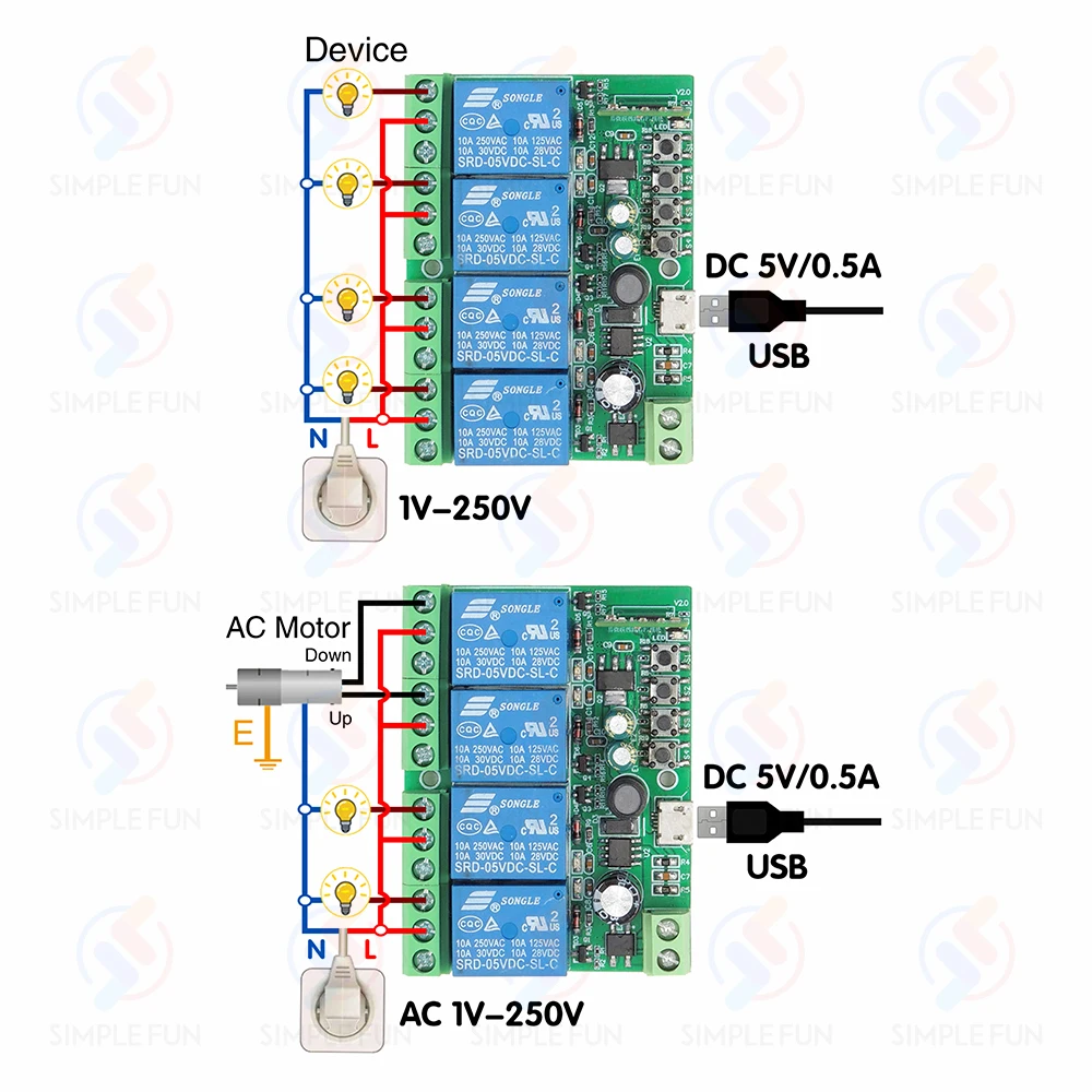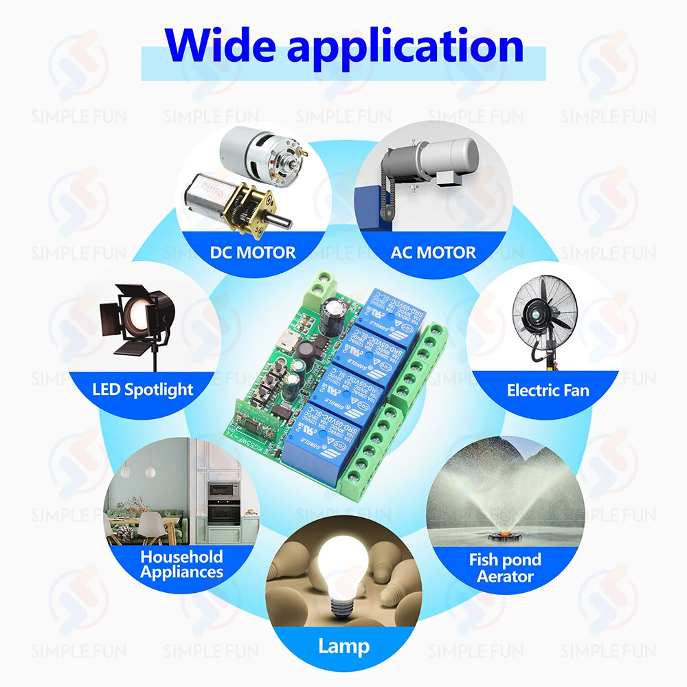 • Une large gamme d’applications, peut être utilisée pour connecter des lumières/moteurs DC et AC/portes de garage, etc.